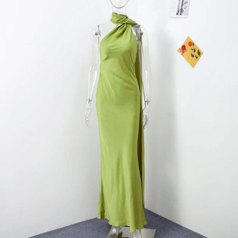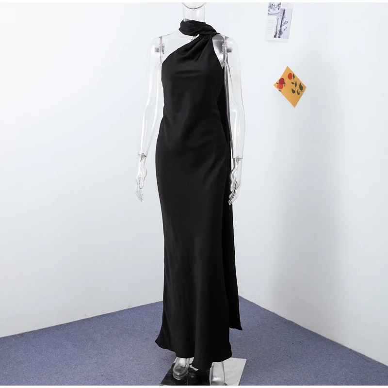 Victoria’s Vogue Elegant Women’s Ribbon Long Satin Party Dress Halter Backless Sleeveless Female Dresses 2025 Summer Lady Solid Evening Gowns