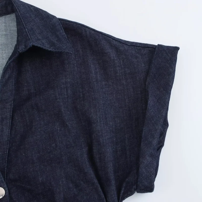 Victoria’s Vogue series denim MIDI dress with lapel side zipper fashion wrinkle waist slim elegant dress