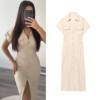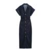 Victoria’s Vogue series denim MIDI dress with lapel side zipper fashion wrinkle waist slim elegant dress