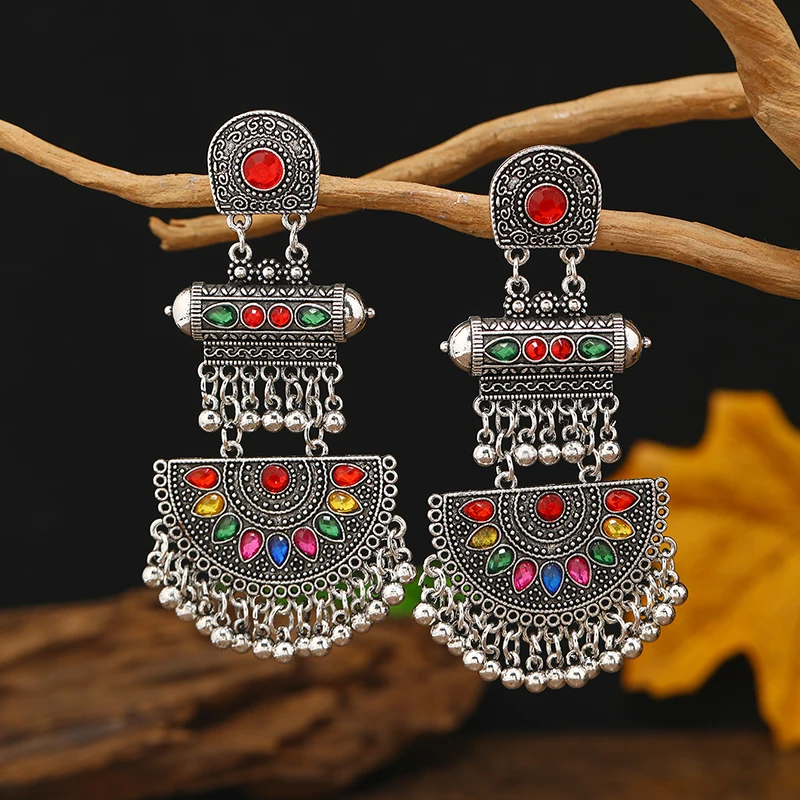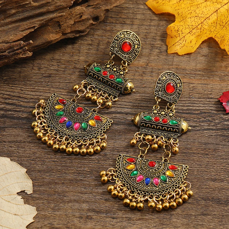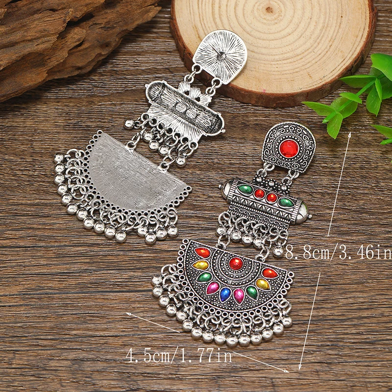 Victoria’s Vouge European and American Bohemian style colored fan-shaped alloy vintage ethnic style earrings