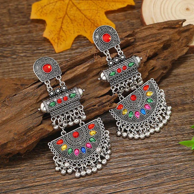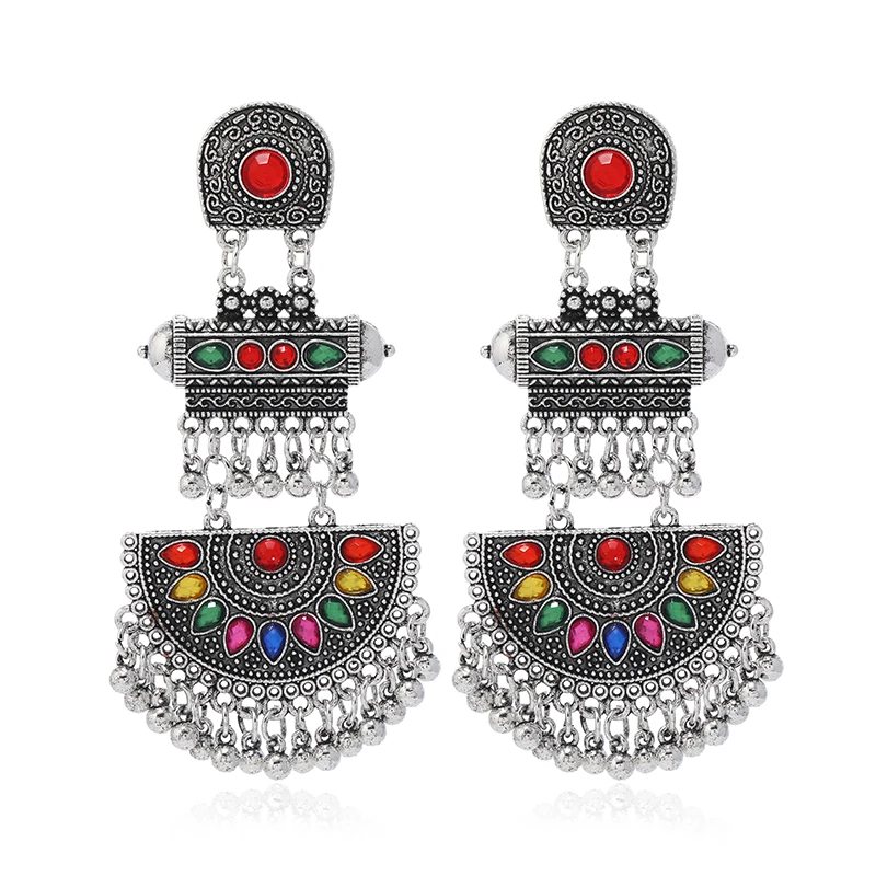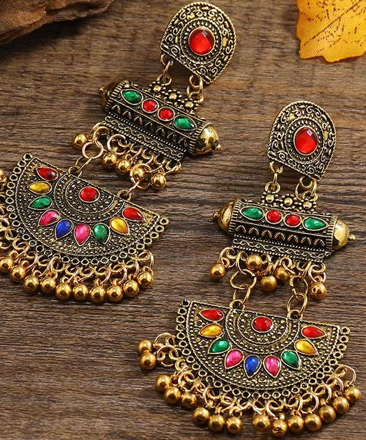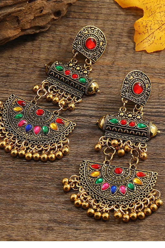 Victoria’s Vouge European and American Bohemian style colored fan-shaped alloy vintage ethnic style earrings