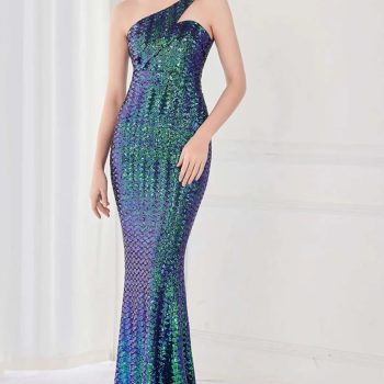 victoria’s vogue Sexy backless sequin maxi summer dress women glitter club party dress evening dresses one shoulder irregular long dress vestidos