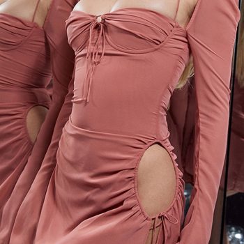 victoria’s vogue Hollow Out Ruched Dress Women 2022 Spring Sexy Slim Flare Sleeve Female Clothing Solid Backless Drawstring Dress Mini