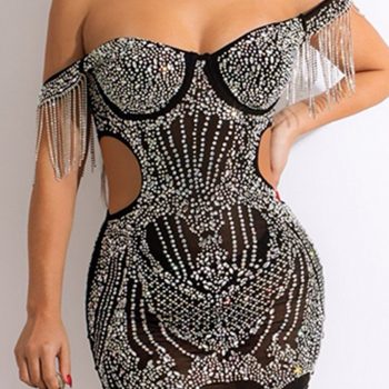 victoria’s vogue Sexy backless rhinestone corset summer dress women glitter mini club party dress off shoulder mesh bodycon dress evening dresses