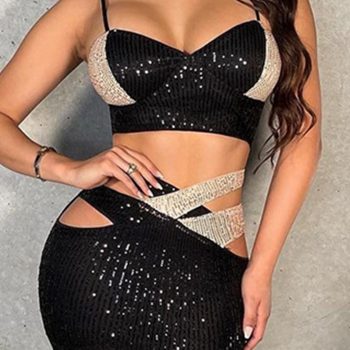 victoria’s vogue Sexy black slip corset sequin club party dress women glitter mini summer dress cut out bodycon dress evening dresses vestidos