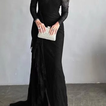 Victoria’s Vogue 2025 Womens Black Wedding Dresses for Party Evening Formal Bodycon Autumn Floor-Length Elegant Woman Lace Long Dress