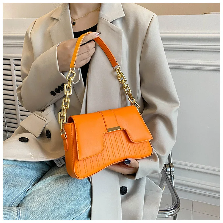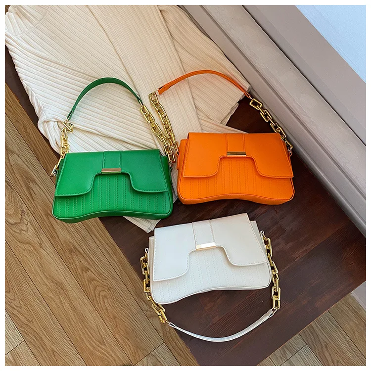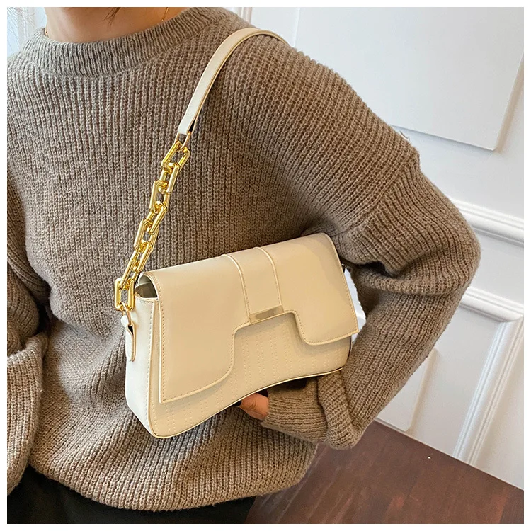 Victoria’s Vogue Fashion Acrylic Chain Shoulder Bag Ladies Handbags Casual Solid PU Leather Underarm Bags For Women Daily Used