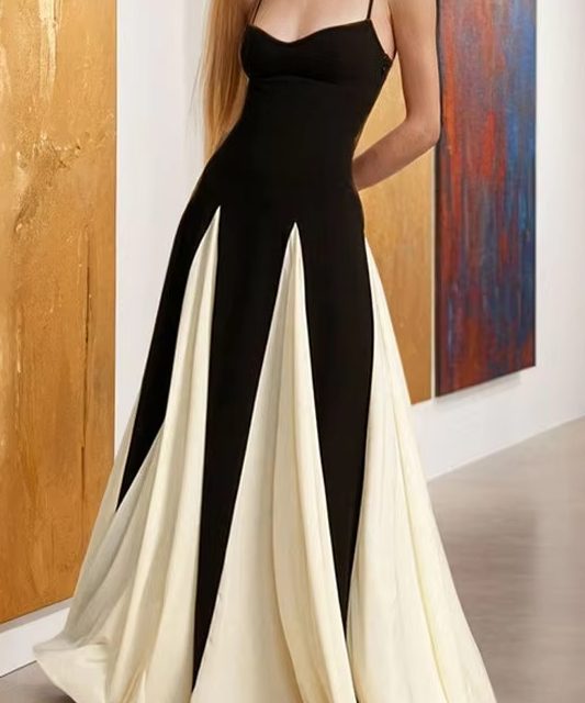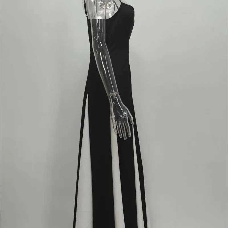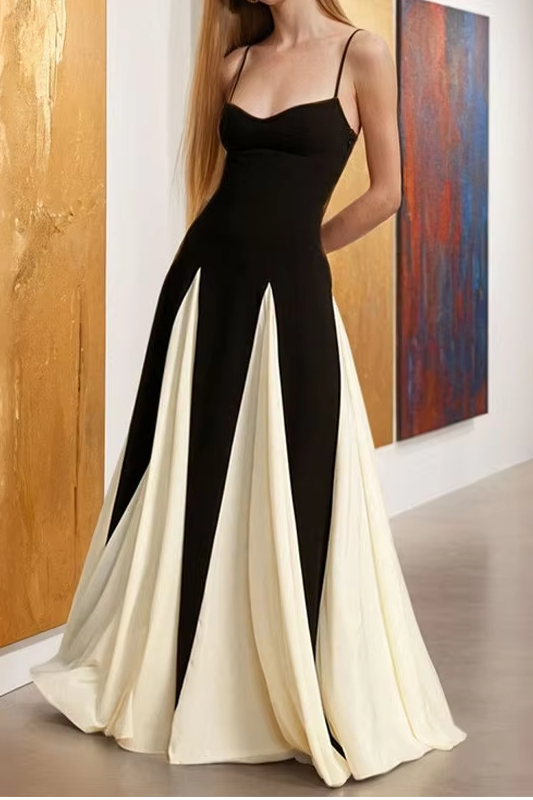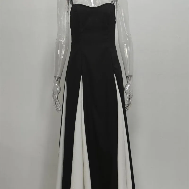 Victoria’s Vogue Fashion Contrast Color Pleated Hem Long Dress Elegant Sleeveless Backless High Waist Dresses 2025 New Lady Vocation