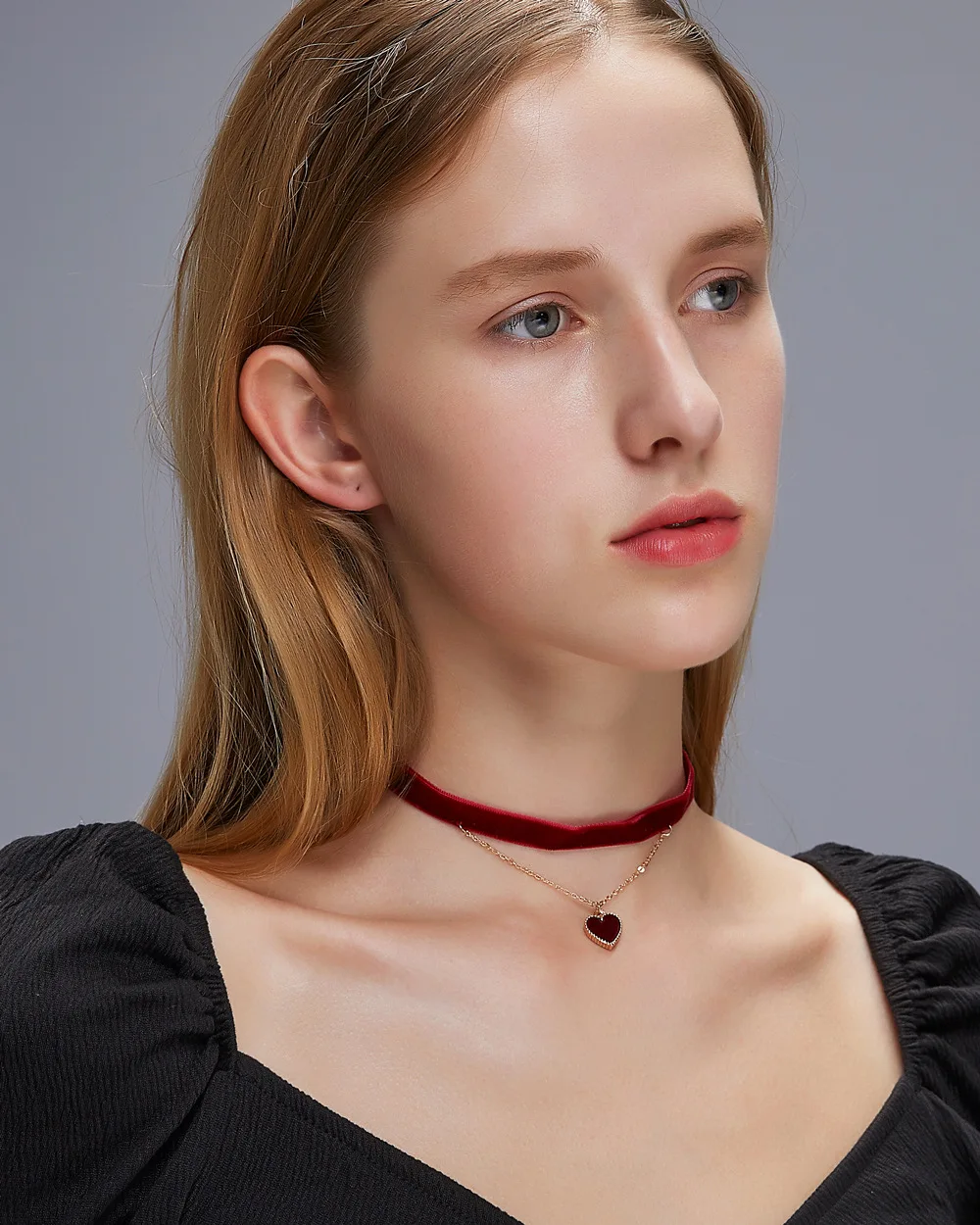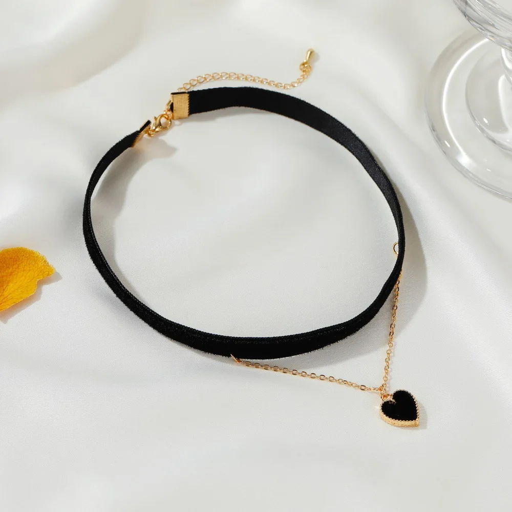 victoria’svogue Fashion Velvet Choker Heart Crystal Pendant Necklaces Black Ribbon Clavicle Chain Necklace Simple Heart Velvet Women Jewelry
