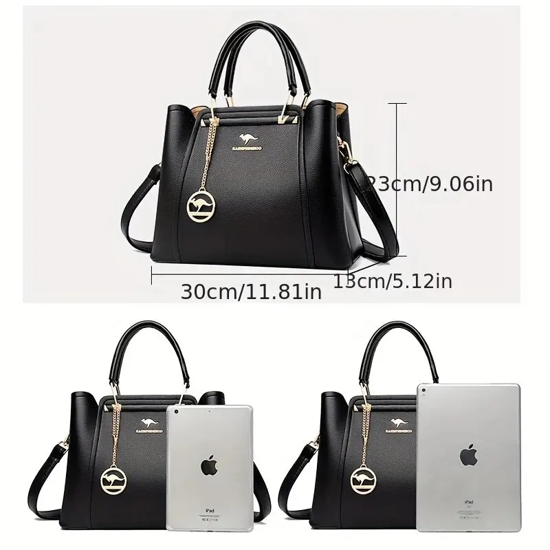 • Genuine PU Leather Handle :Crafted from high-quality soft PU leather, this bag offers a luxurious feel and long-lasting durability. The fashionable women’s handbag is perfect for everyday use.