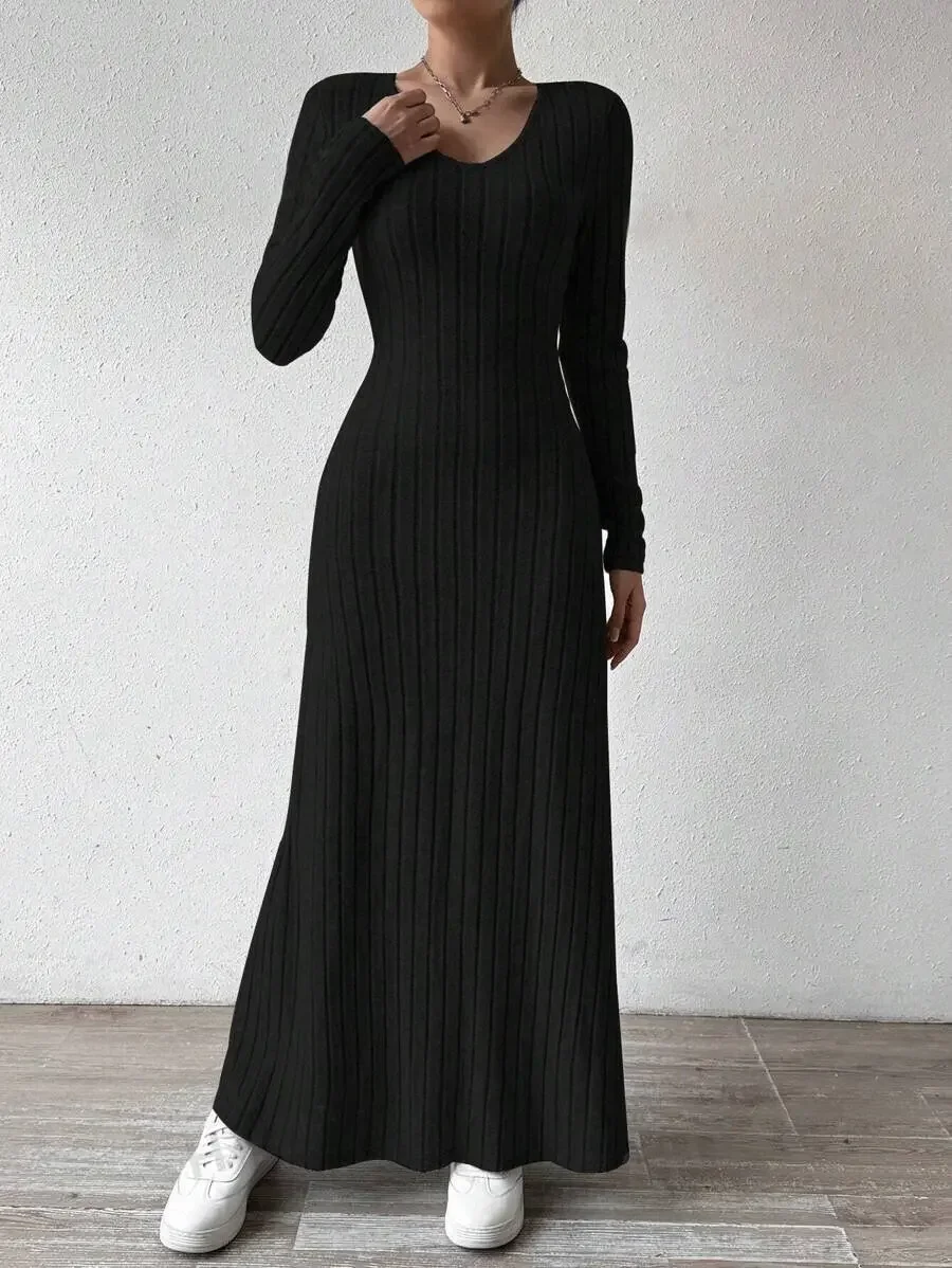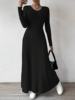 victoria’svogue Fashionable Knitted Long Sleeve A- Line Streetwear Dress For Women Smooths And Slims Your Silhouette Solid Color Long Dress