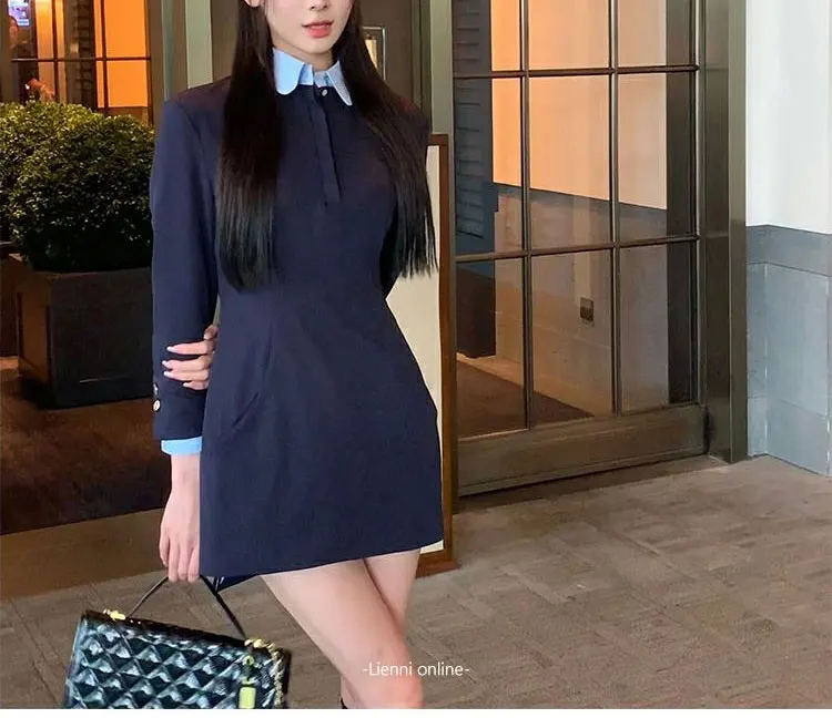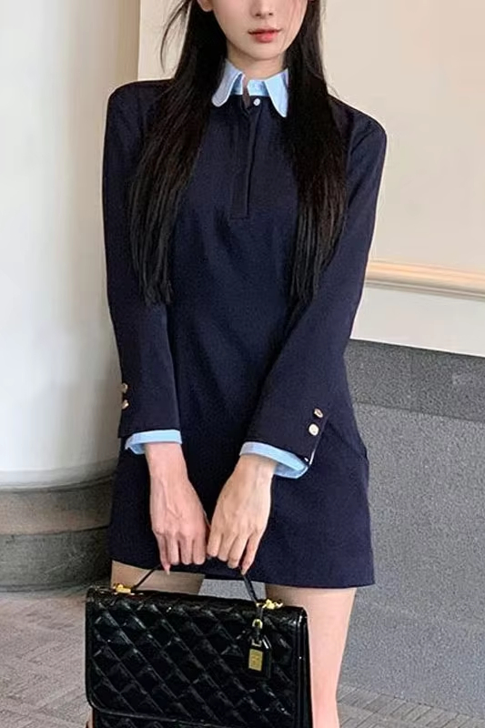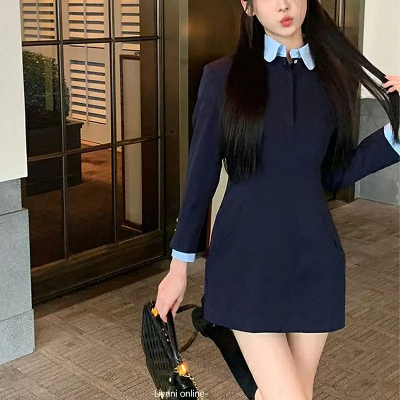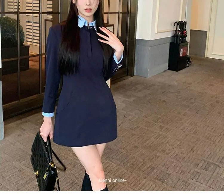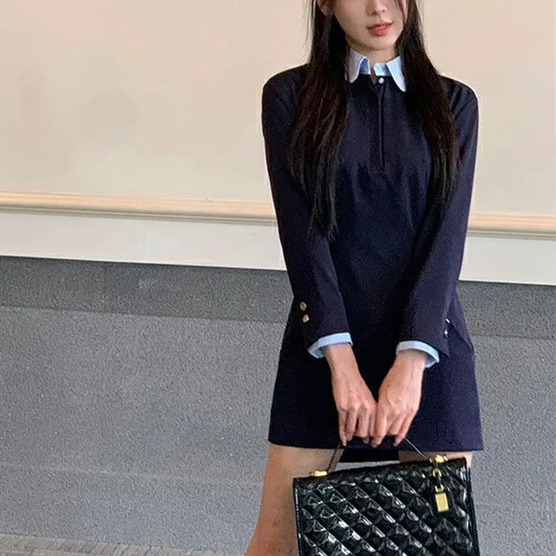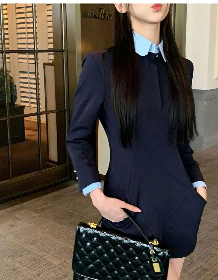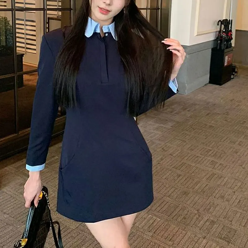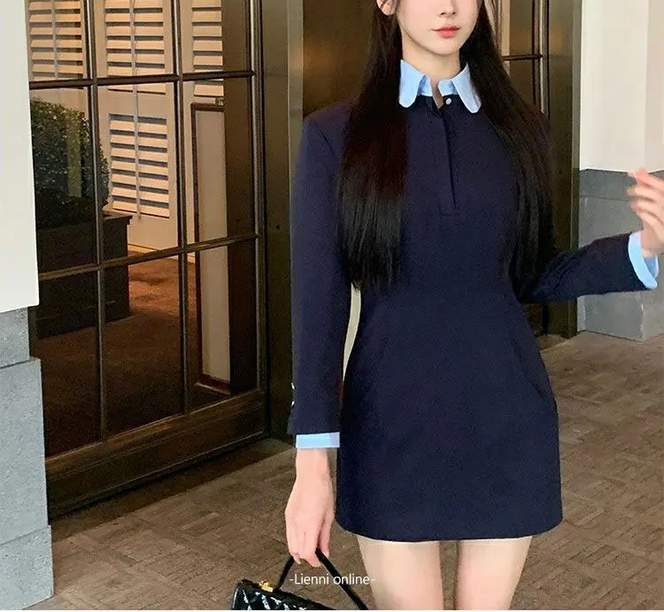 Victoria’s Vogue Fashionable Spliced Waist Dresses Women’s Clothing Fake Two Pieces Spring Autumn Korean Lapel Button Vintage Aura Mini Dress New