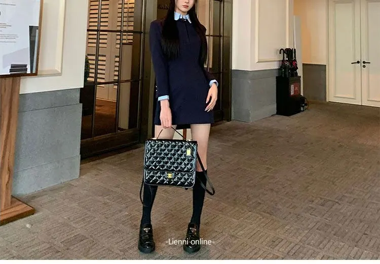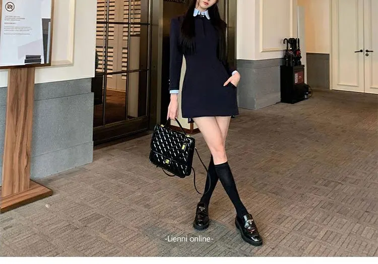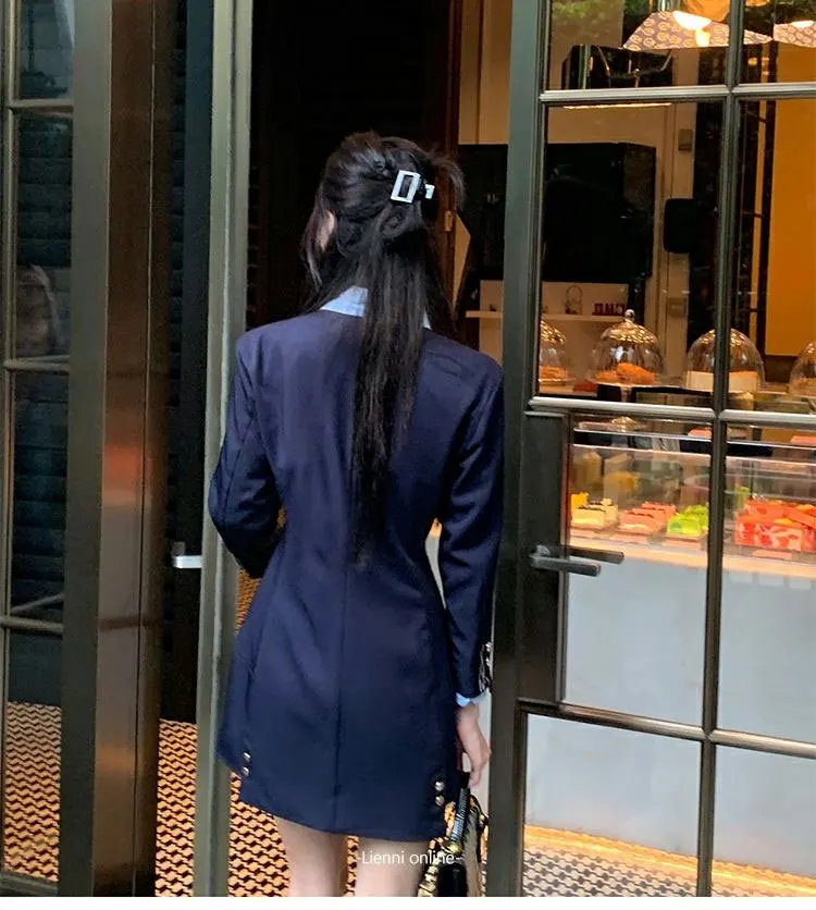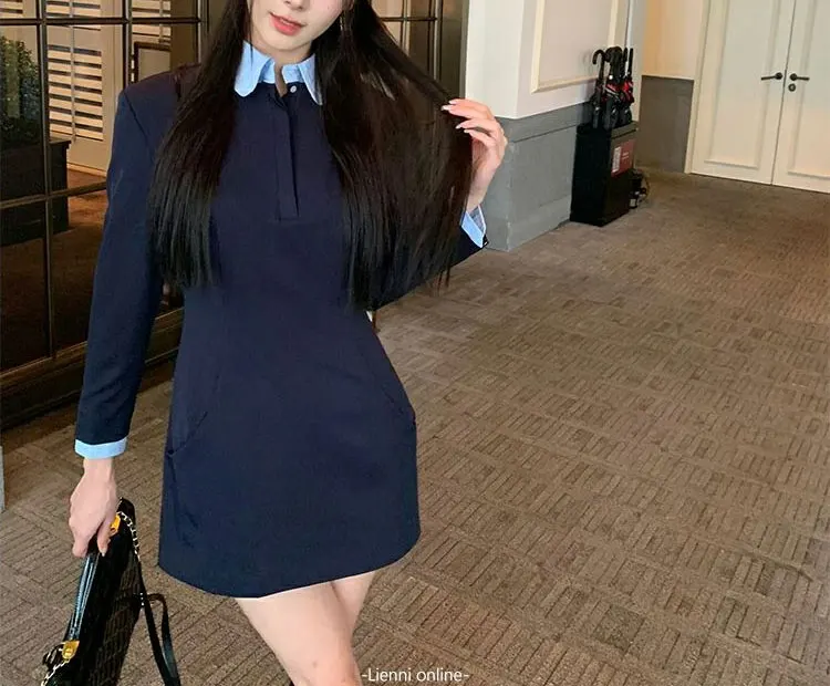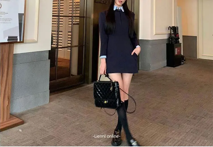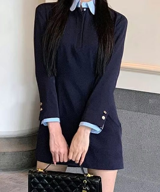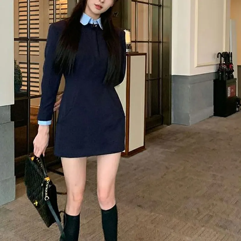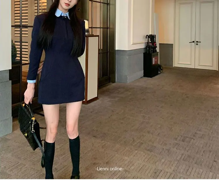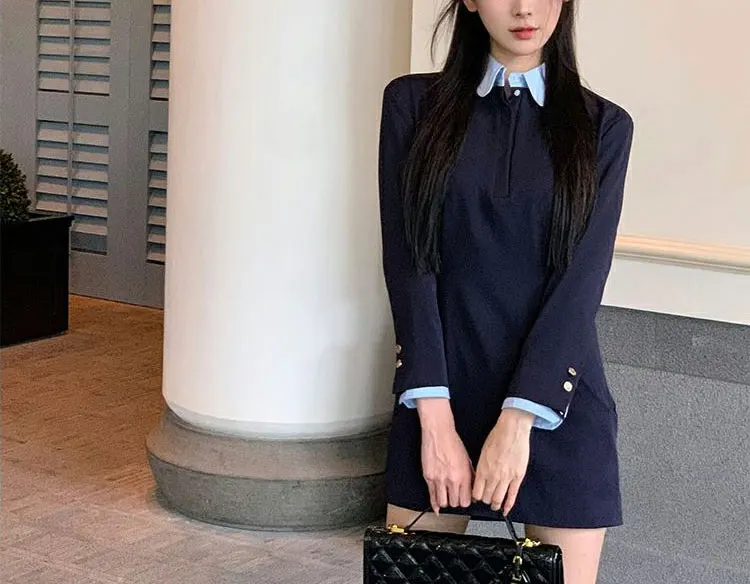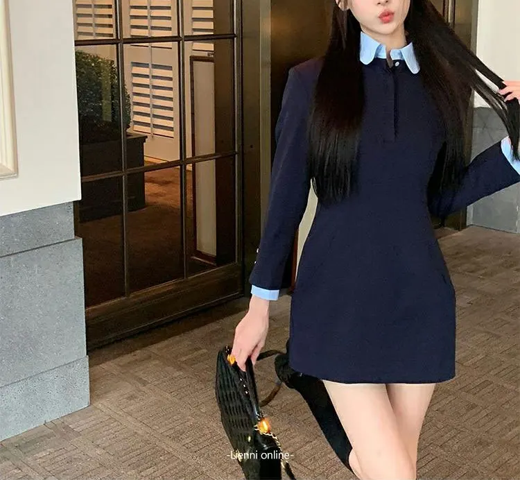 Victoria’s Vogue Fashionable Spliced Waist Dresses Women’s Clothing Fake Two Pieces Spring Autumn Korean Lapel Button Vintage Aura Mini Dress New
