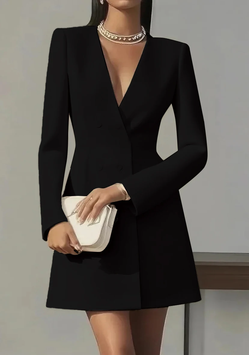 Victoria’s Vogue Fashionable V-neck Long-sleeved Double-breasted Waist Mini Dress