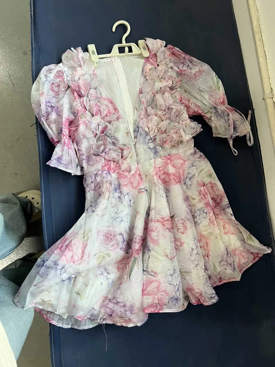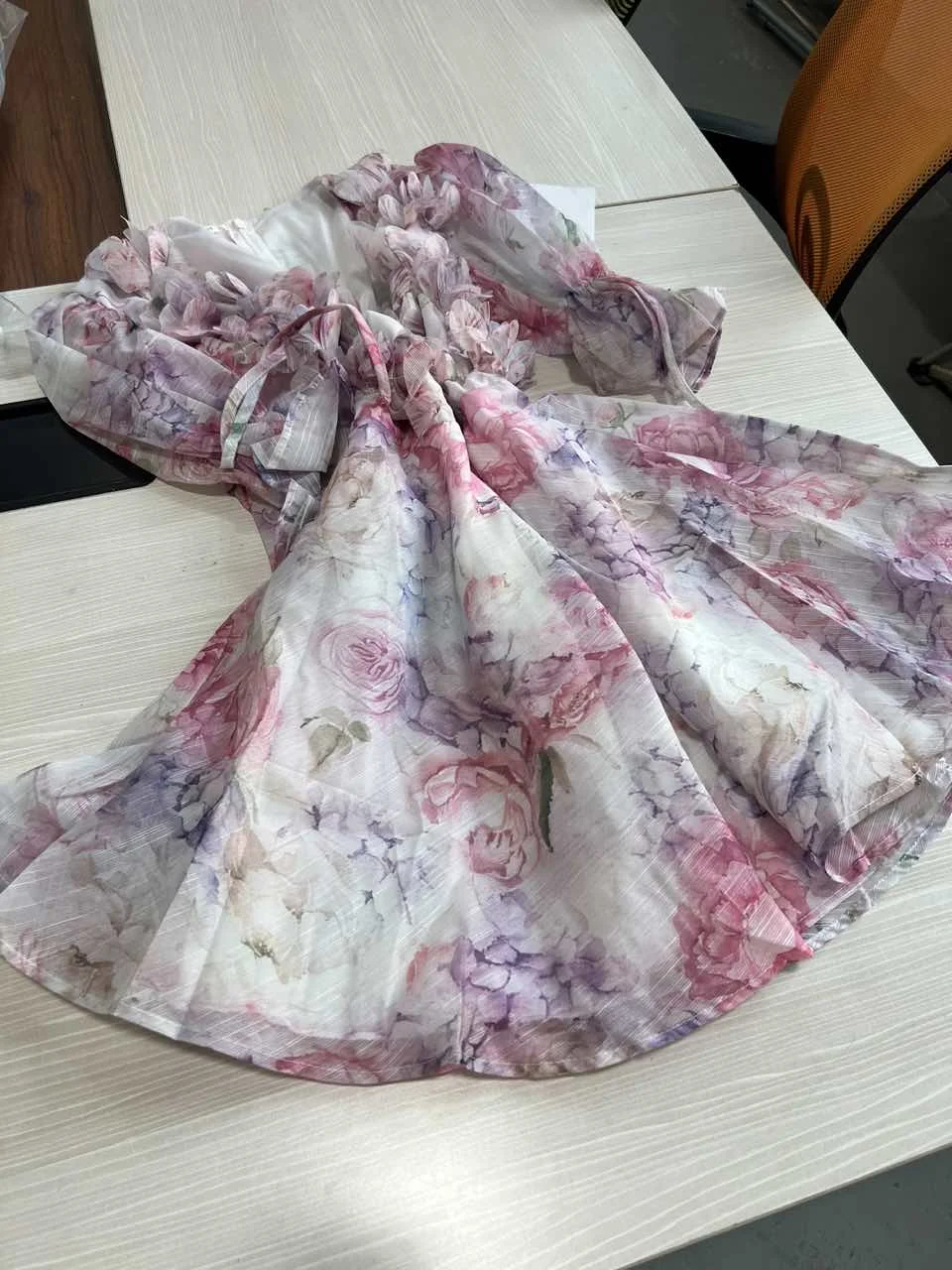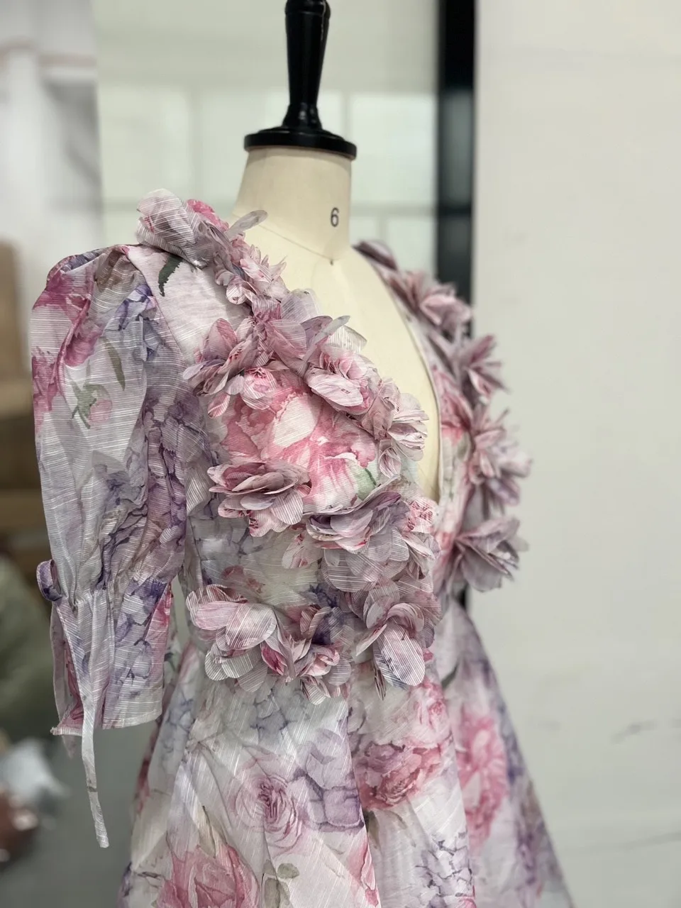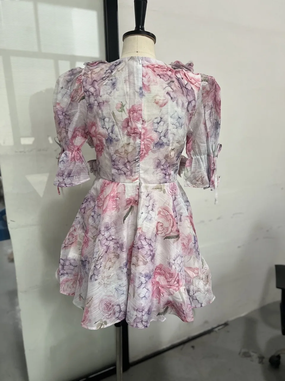 Victoria’s Vogue Flower Printed Short Puff Sleeve Mini Dress Women V Neck Beach Holiday Summer Short Vestido 2025 Beach A-line Sexy Casual Gown