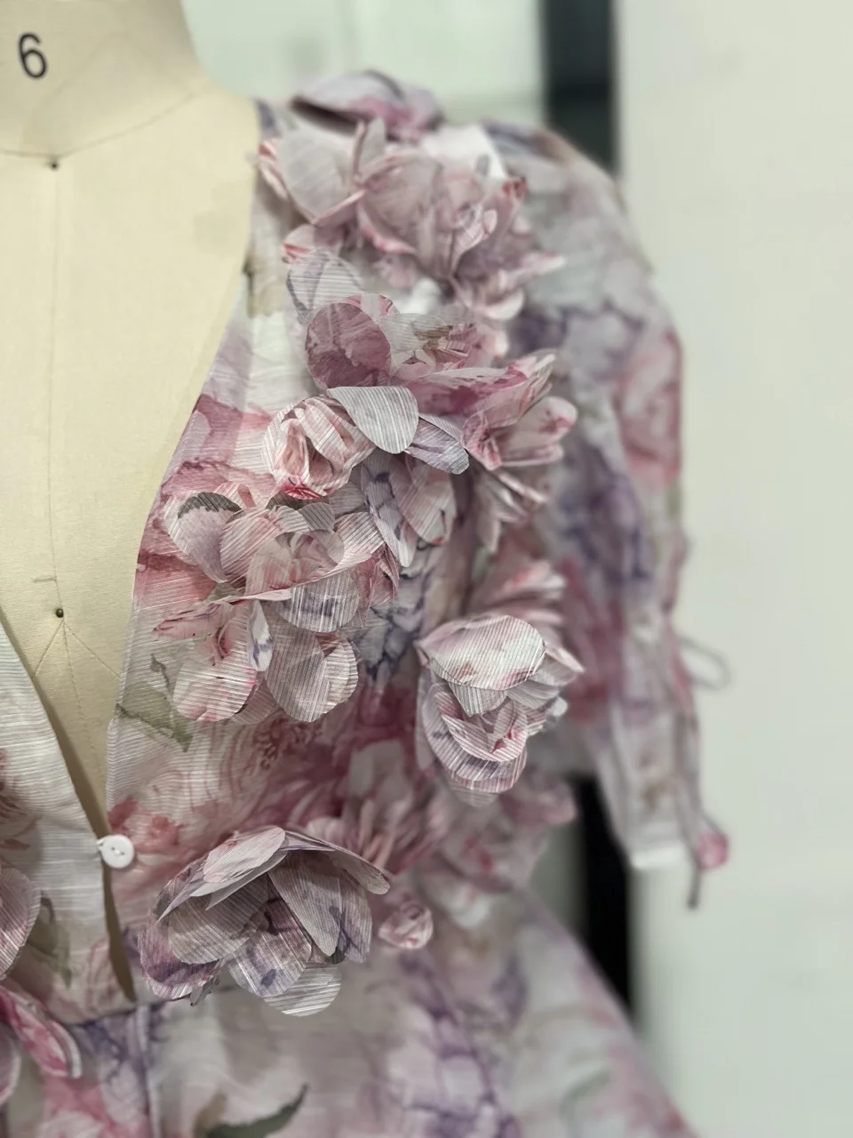 The V-neckline and puff sleeves combine to create a flattering silhouette, enhancing your natural waistline.