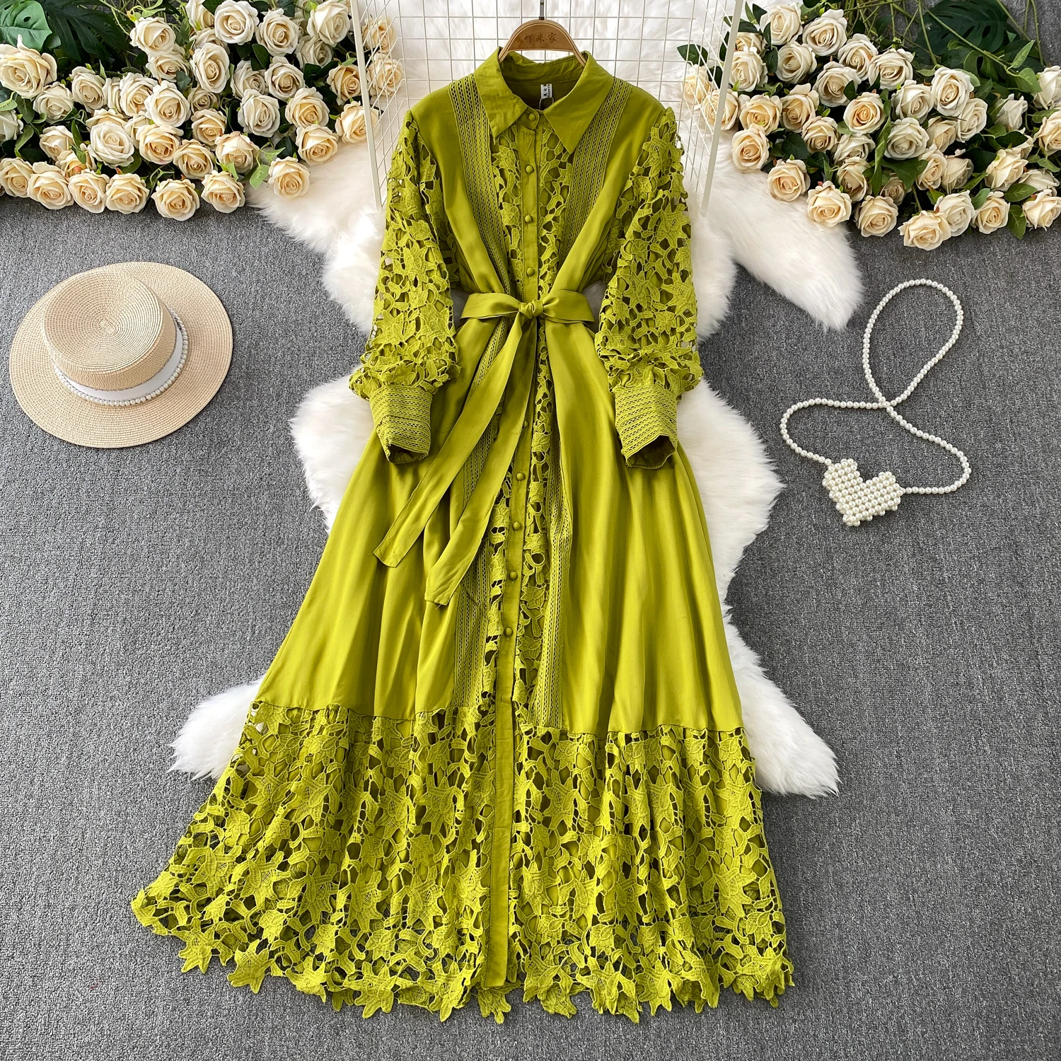 Victoria’s Vogue French chic Single Breasted lace slim fairycore dress women’s summer waist Beach dresses women clothing