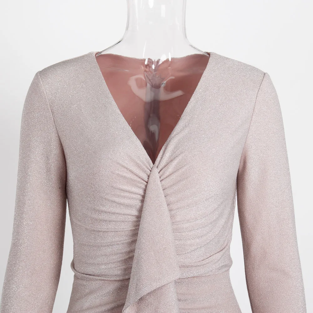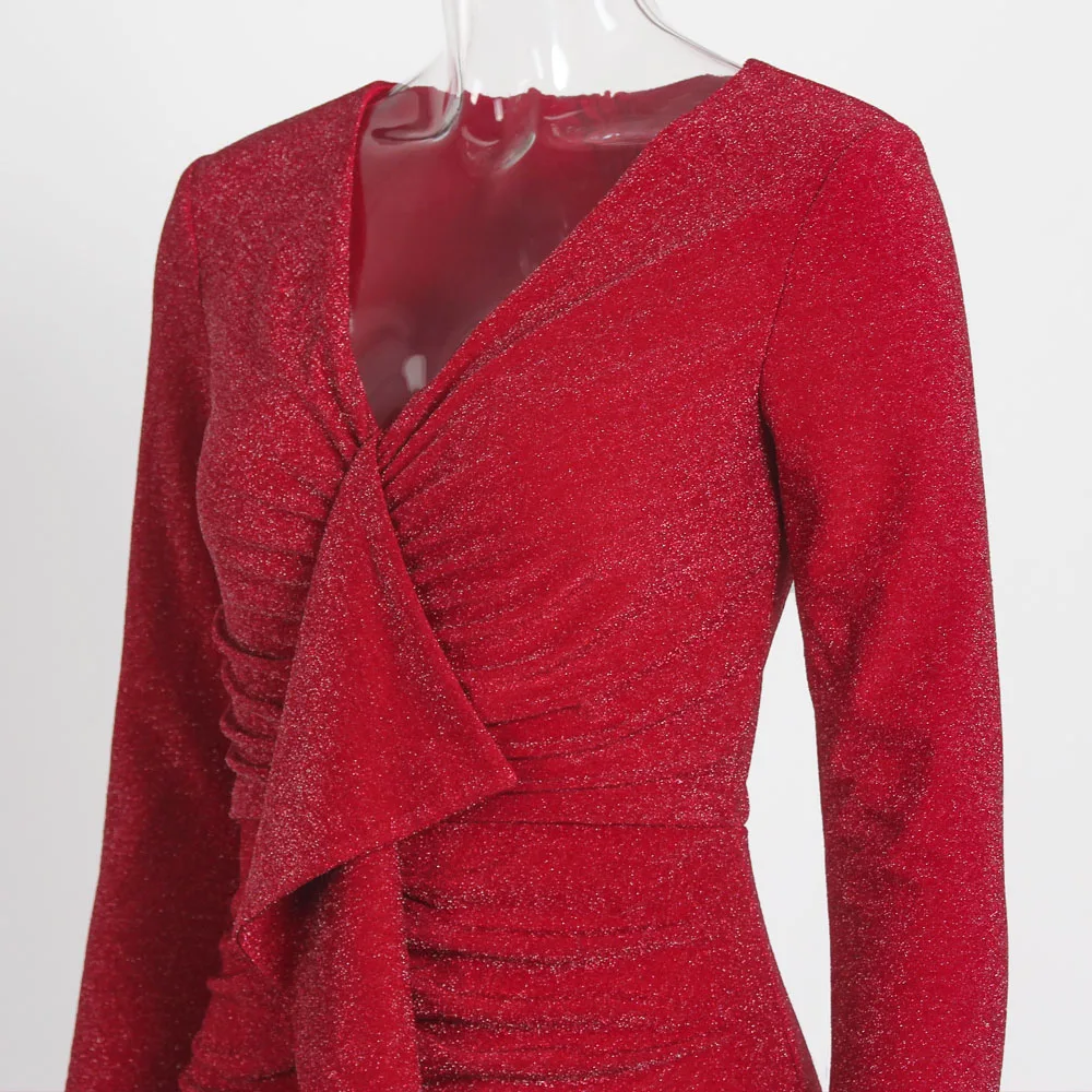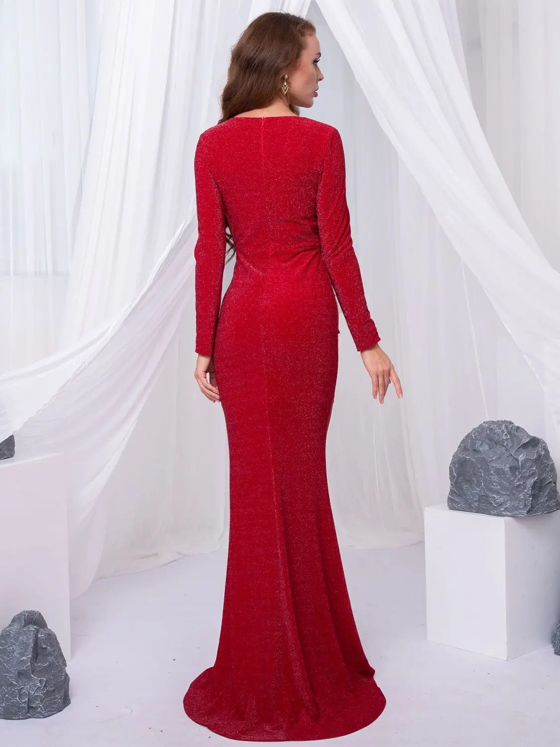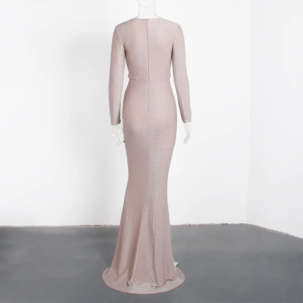 victoria’svogue 2021 Full Sleeved V Neck Stretchy Evening Party Maxi Dress Drap Ruffled Bodycon Formal Long Gown