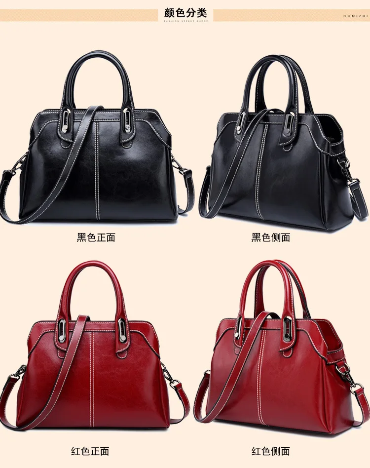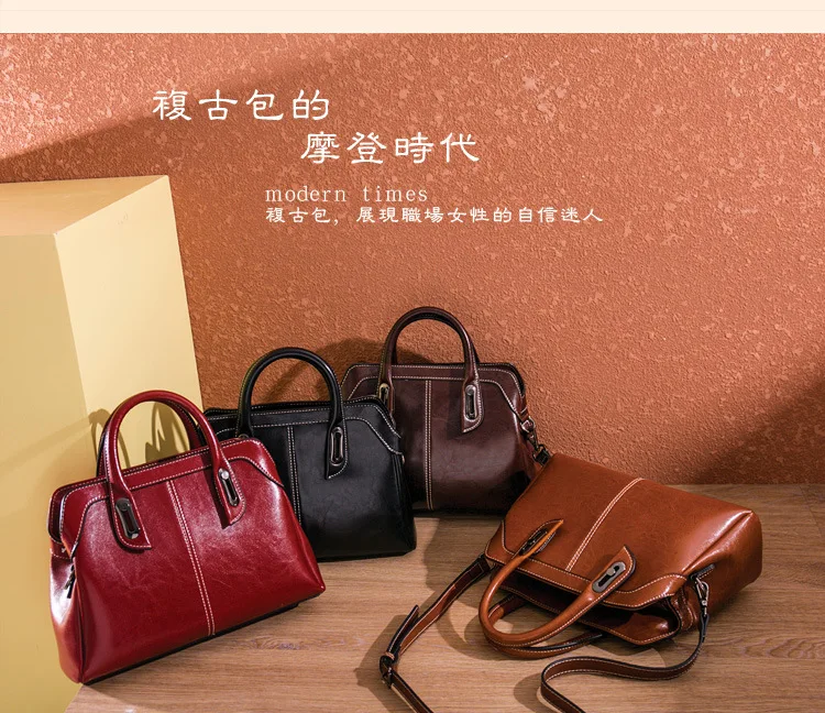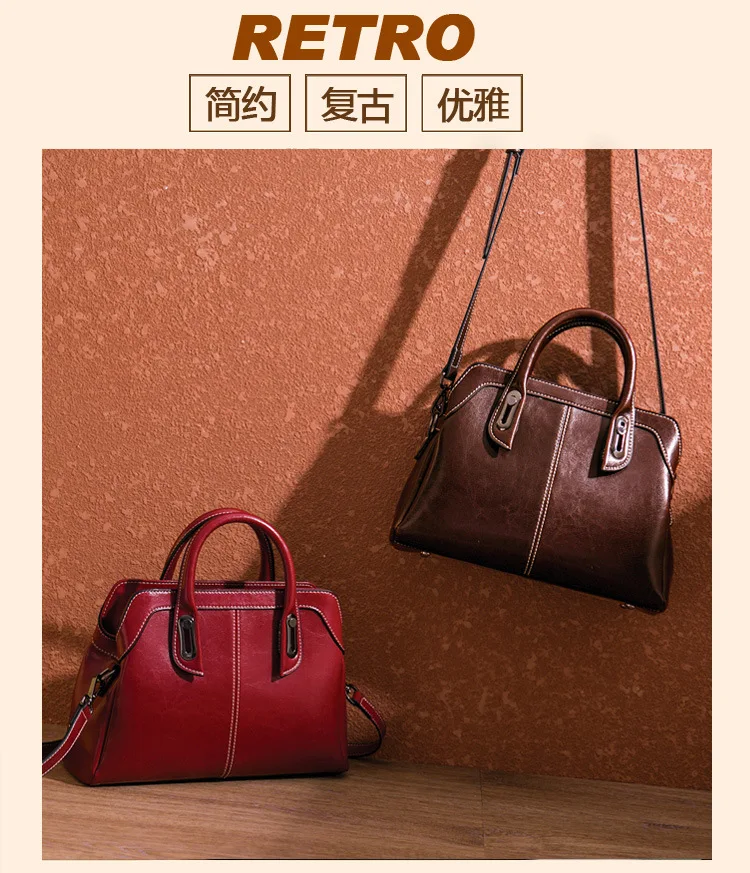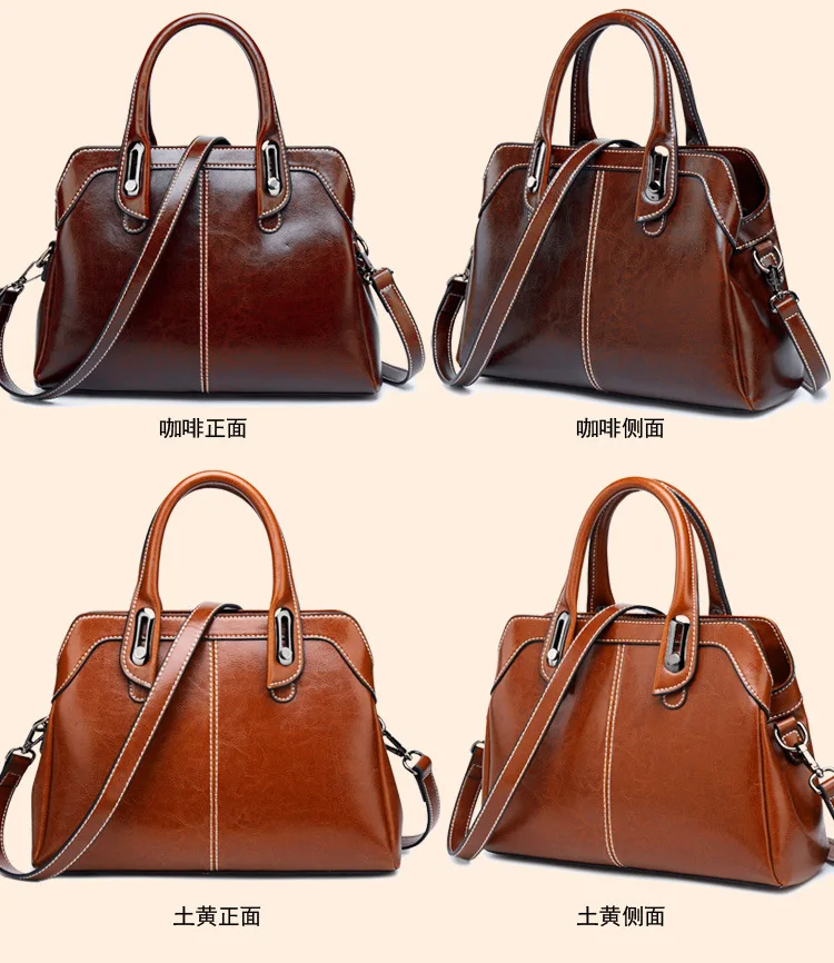 Victoria’s Vogue Genuine Leather Women Handbag Top Handle Shoulder Cross body Bag Fashion Oil Wax Cowhide Purses and Handbags Messenger Tote Bags