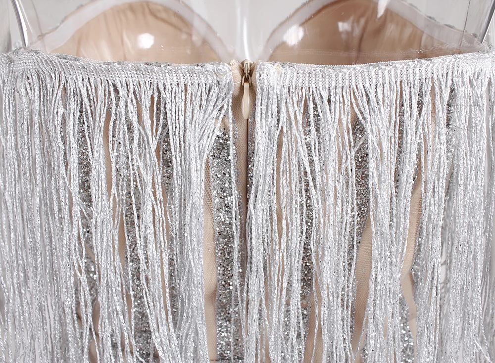 victoria’svogue 2021 Glittered Slit Side Sexy Maxi Dress Tassel Off The Shoulder Sleeveless Patchwork Hollow Out Evening Party Dresses |
