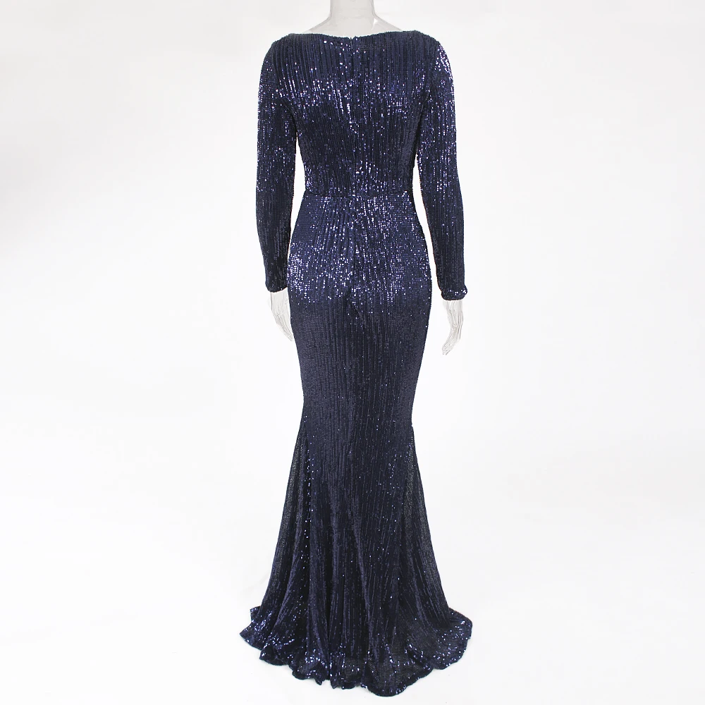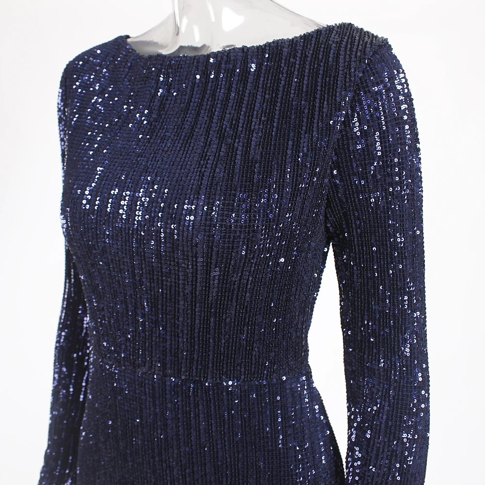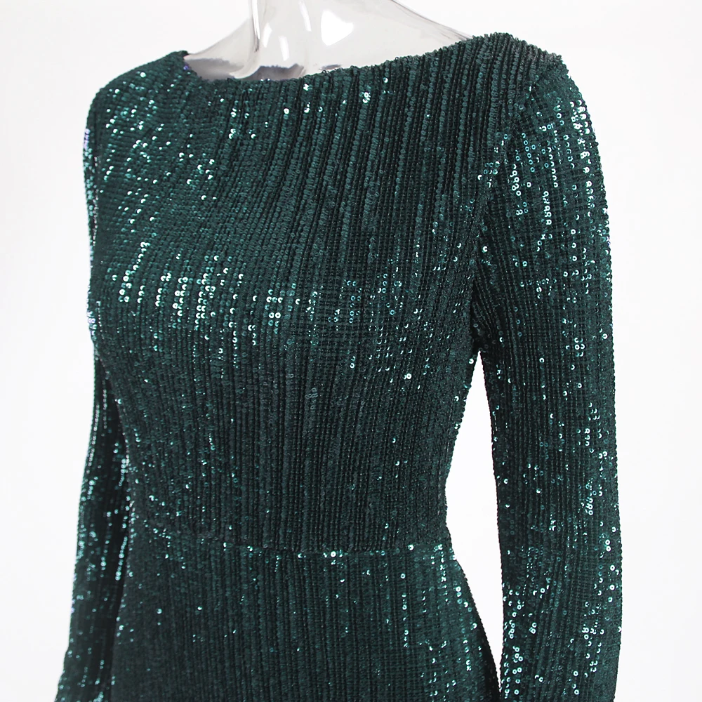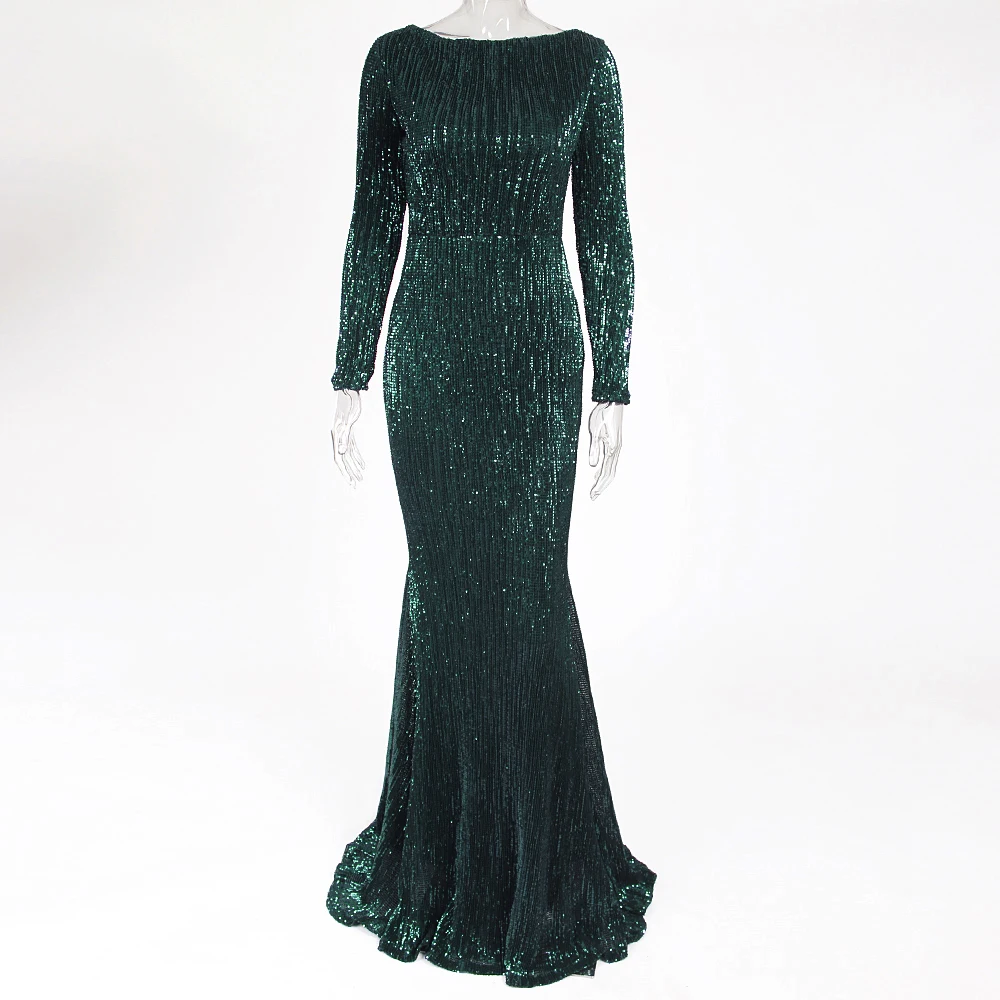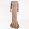 victoria’svogue 2021 Gold Bodycon Stretchy Sparkle Sequin Maxi Dress Tight Package Hips Bodycon Long Sleeve Boat Neck Full Lining Elegant Party Dress