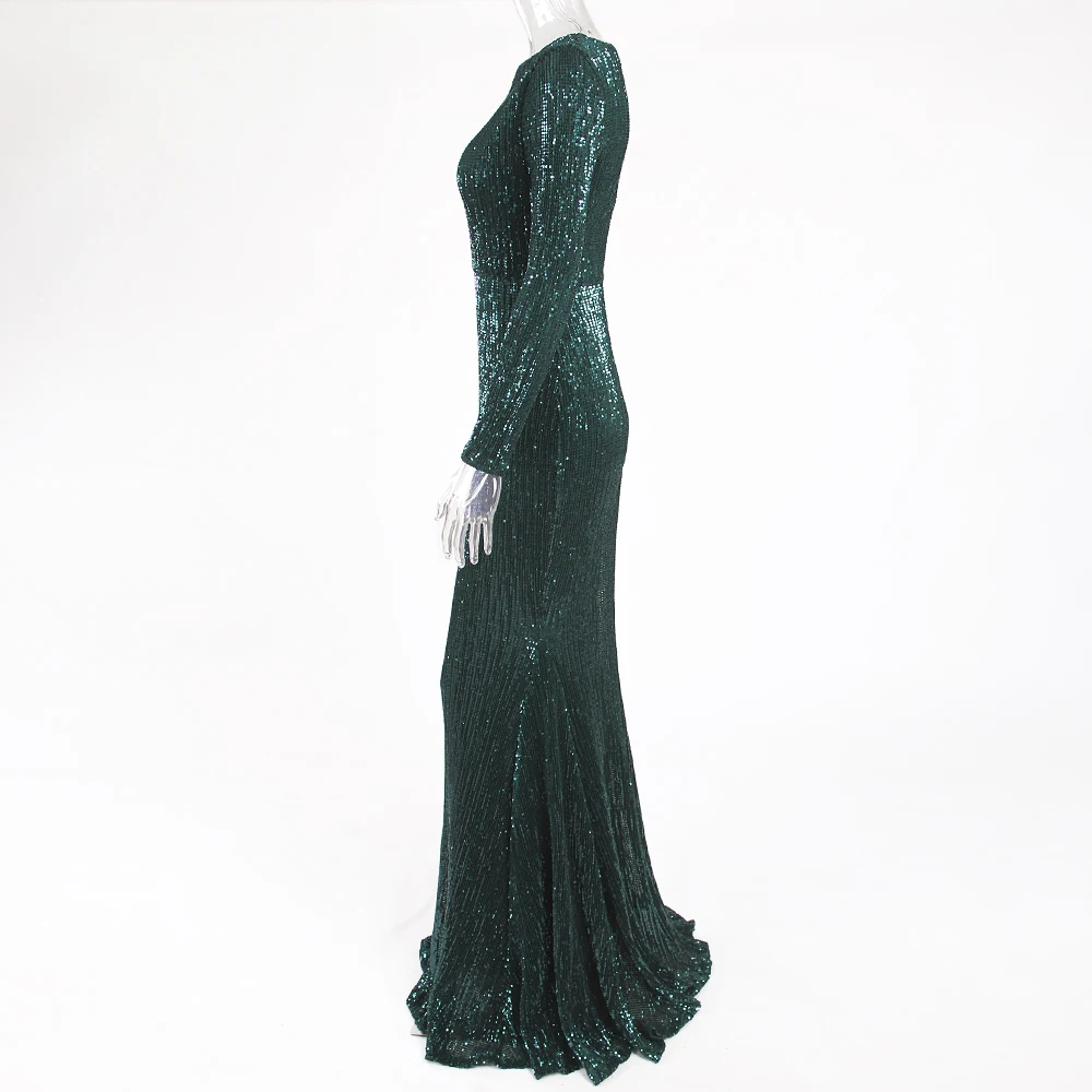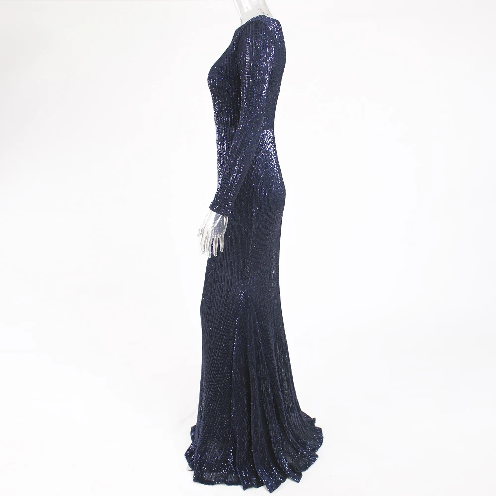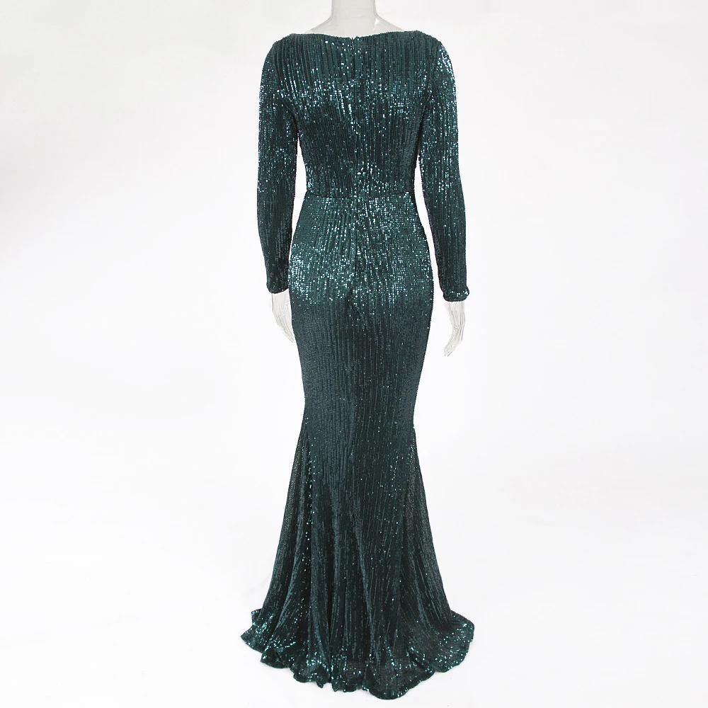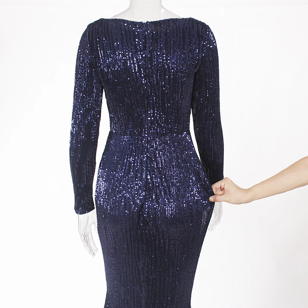 victoria’svogue 2021 Gold Bodycon Stretchy Sparkle Sequin Maxi Dress Tight Package Hips Bodycon Long Sleeve Boat Neck Full Lining Elegant Party Dress