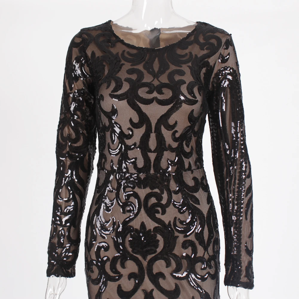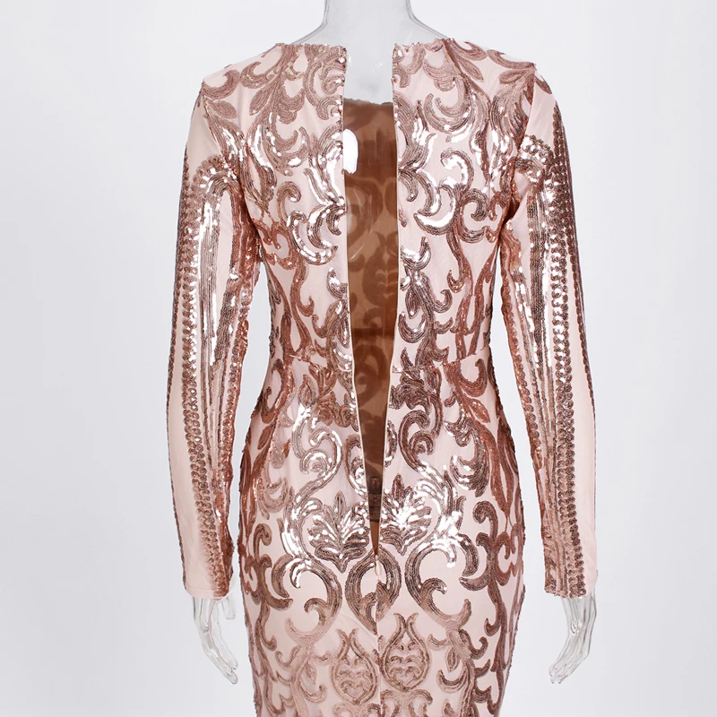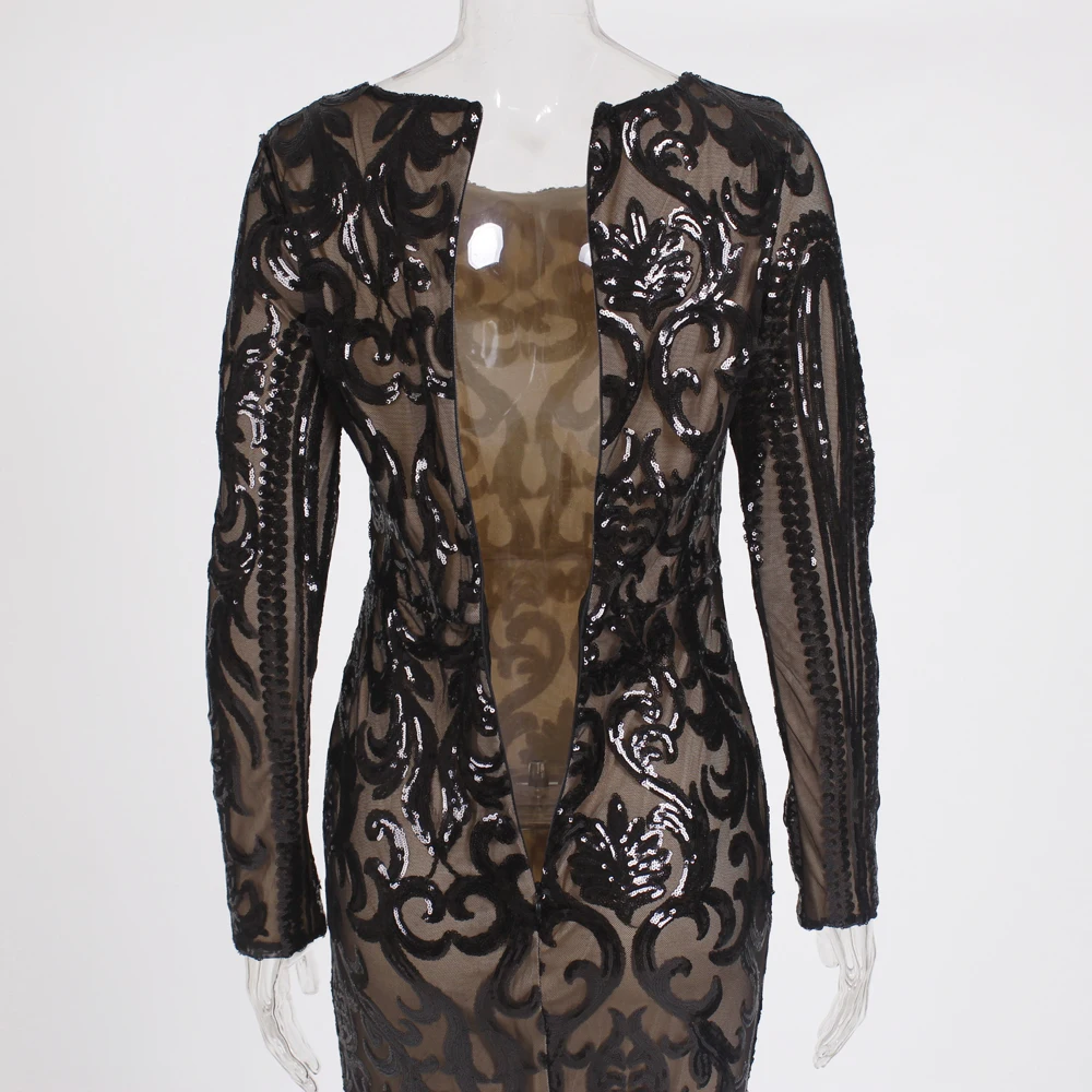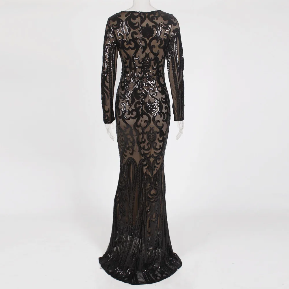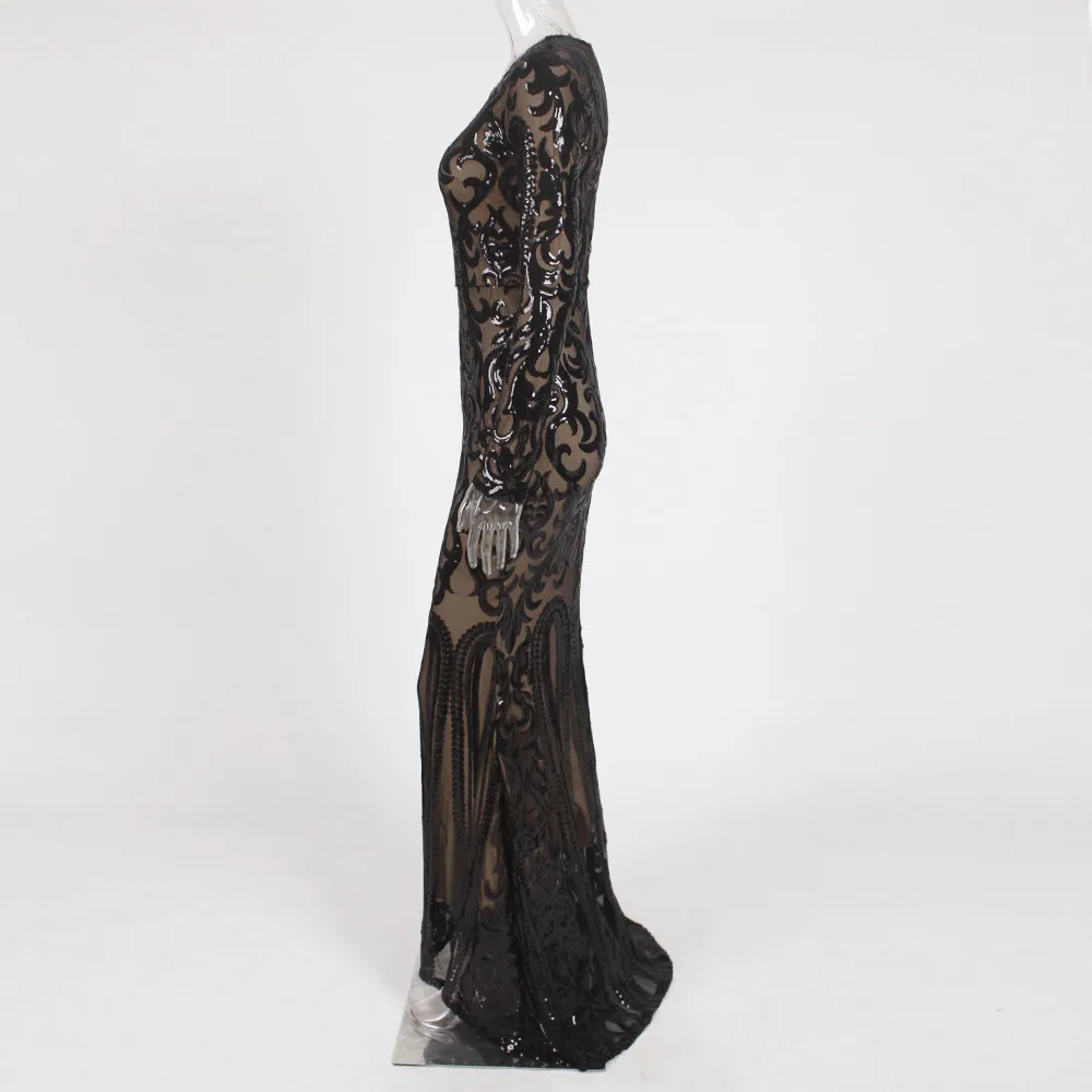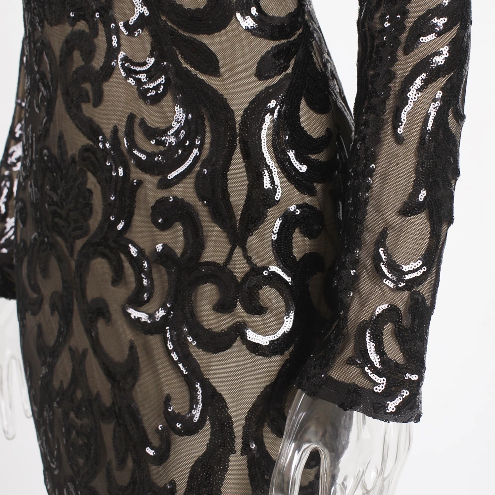 victoria’svogue 2021 Gold Elegant Sequined Vestido Full Sleeved Party Dress Floor Length Bodycon Maxi Dress Evening Gown