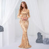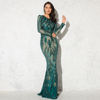 victoria’svogue 2021 Gold Long Sleeve Stretch Sequin Maxi Dress Floor Length Full Lining O Neck Evening Night Gown Green
