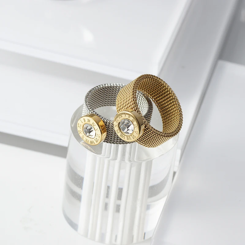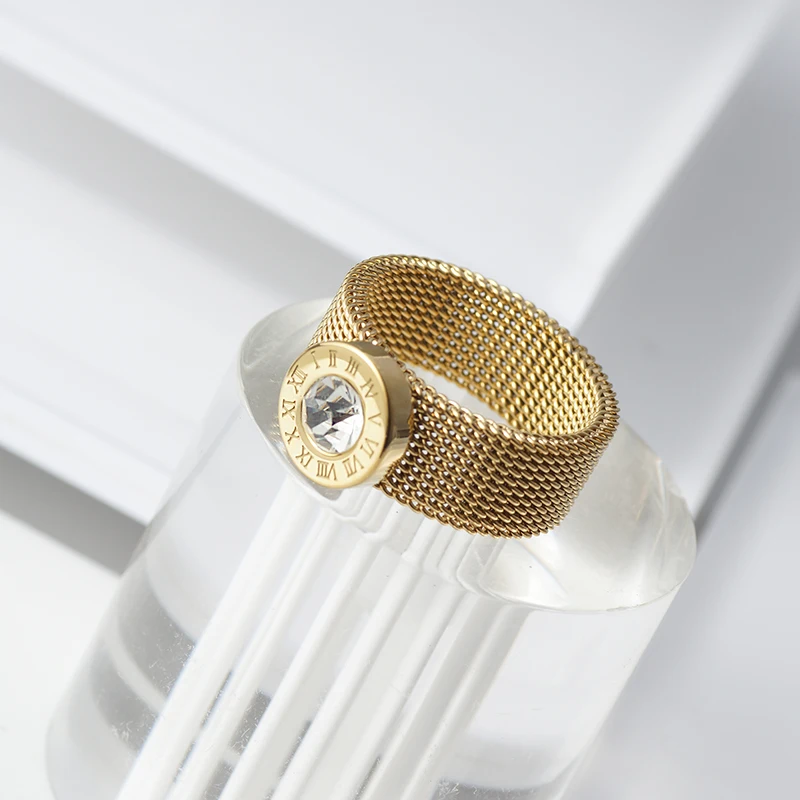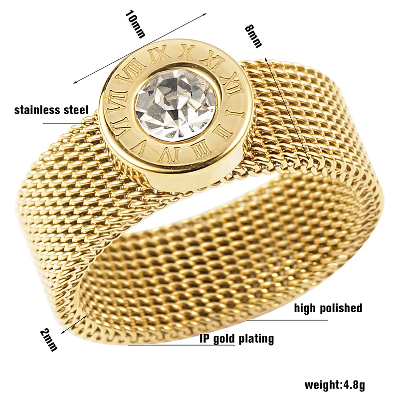 Name:Gold Silver Color Stainless Steel Mesh Chain Ring Crystal Jewelry