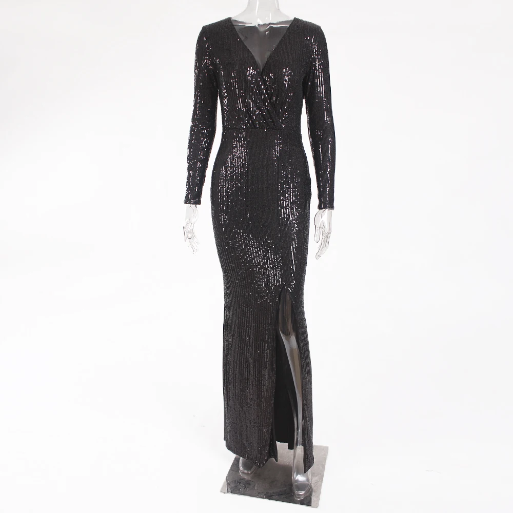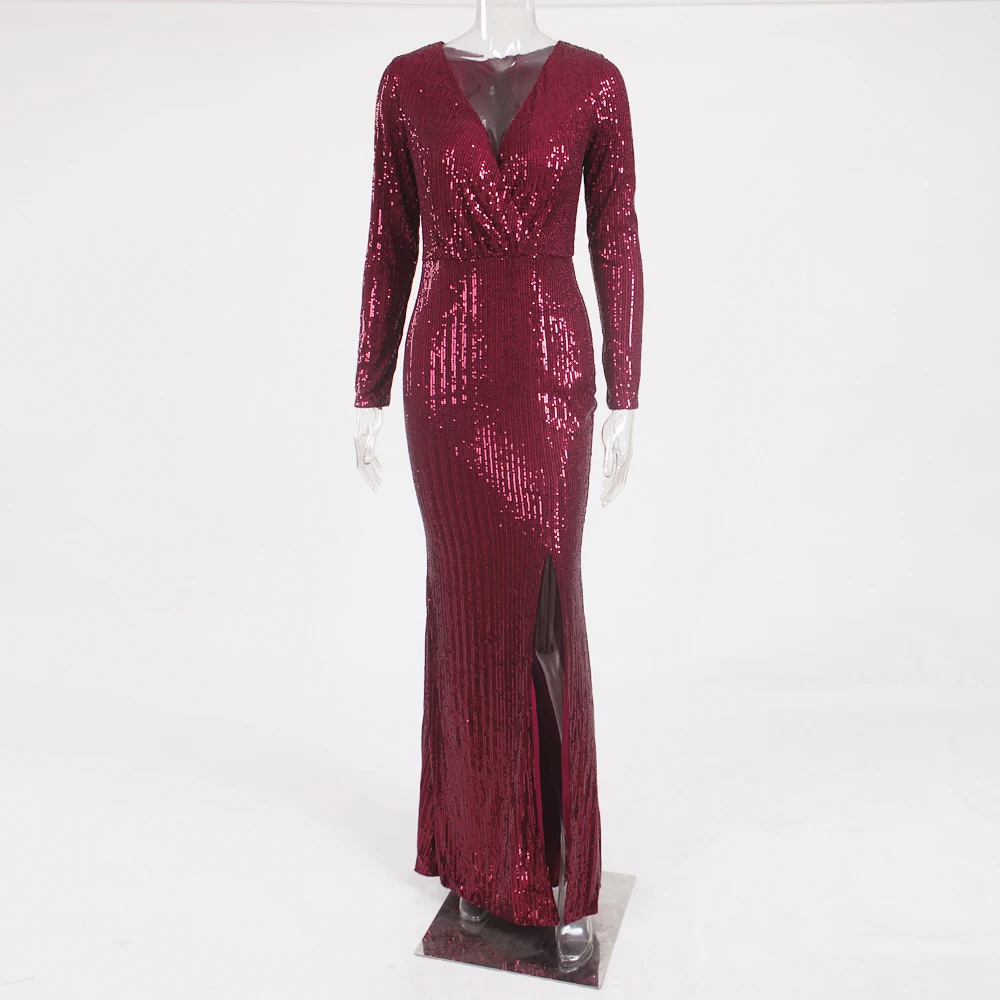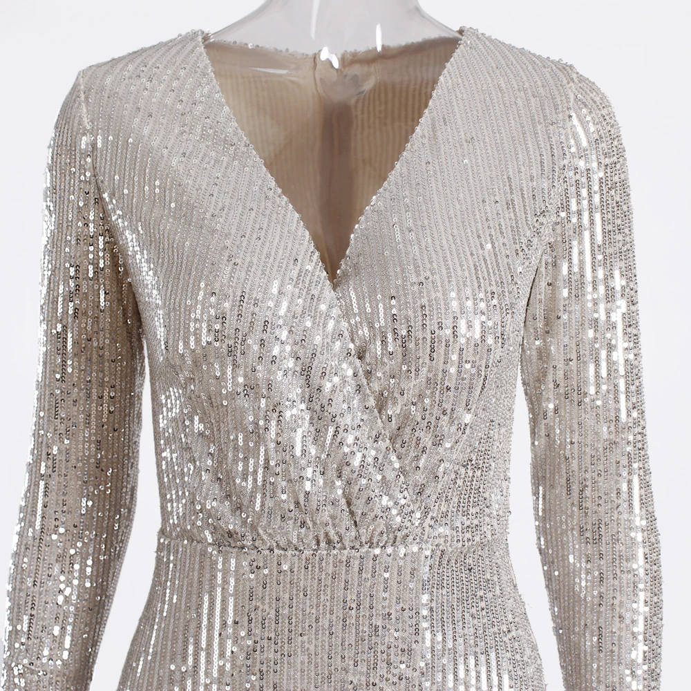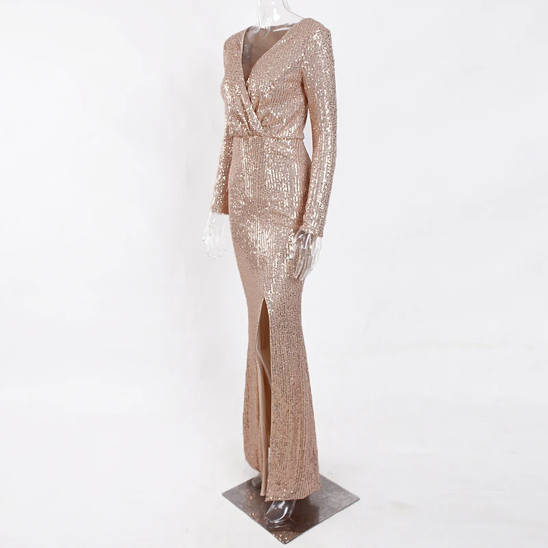 victoria’svogue 2021 Square Collar White Sequined Long Modest Evening Party Gown Maxi Dress Elegant Floor Length Full Sleeved Gold Stretchy Striped Sequin Long Sleeve Maxi Dress V Neck Pleated Leg Split Bodycon Lining Stretchy Green Beige Party Dress
