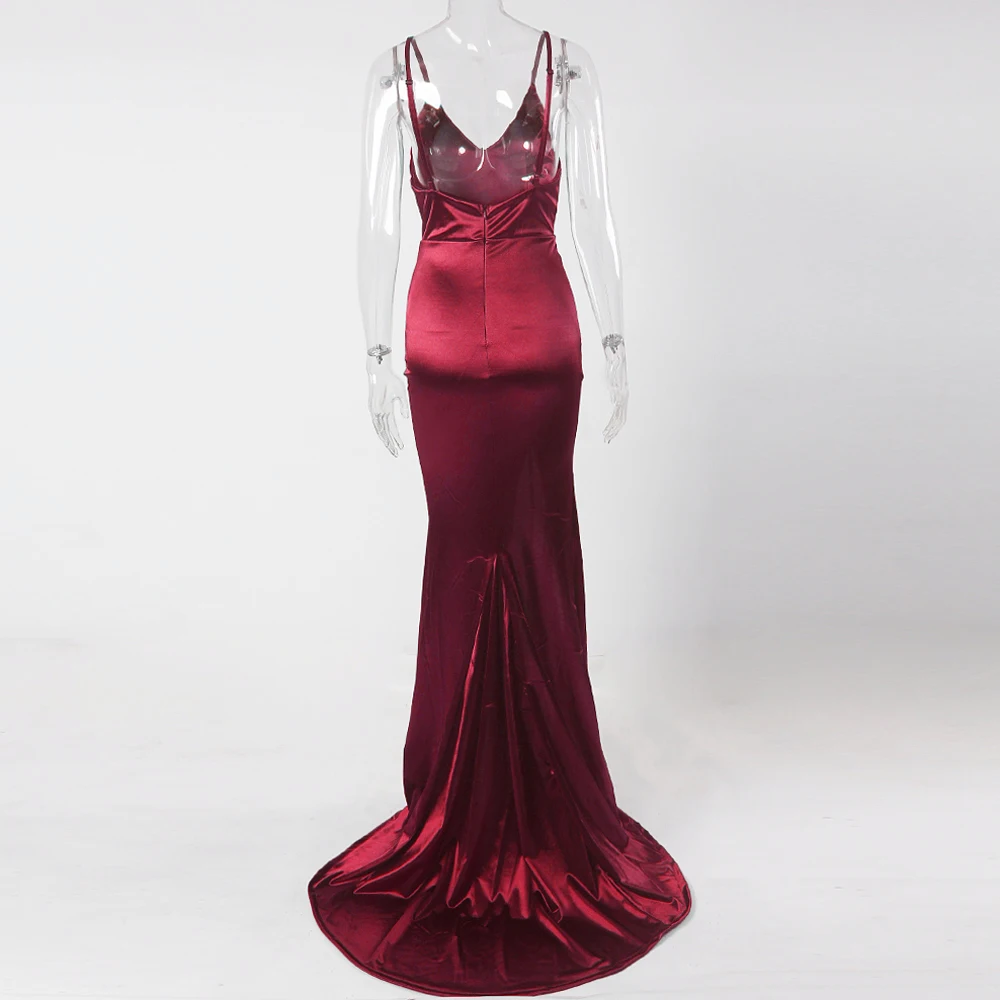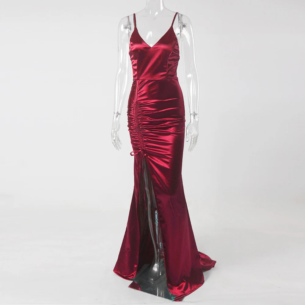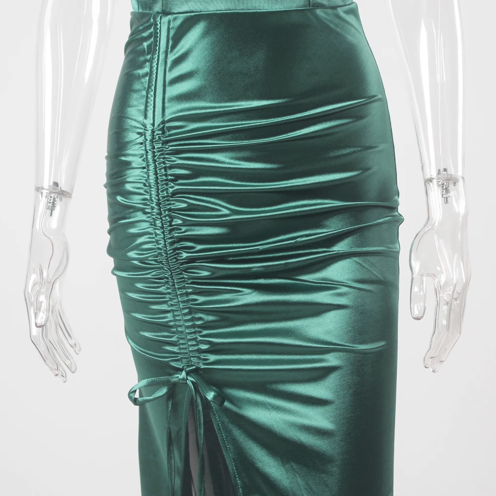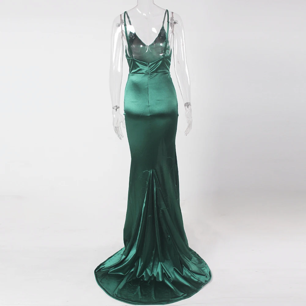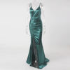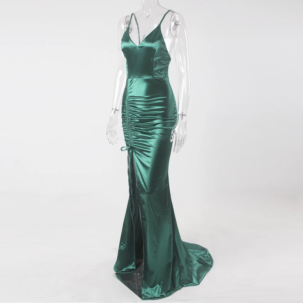 victoria’svogue 2021 Green Satin Drawstring Split Leg V neck Backless Sleeveless Long Evening Party Dress Gown Prom Summer
