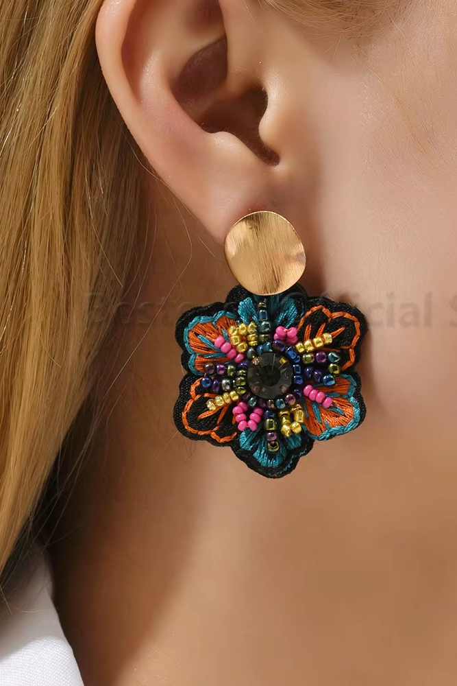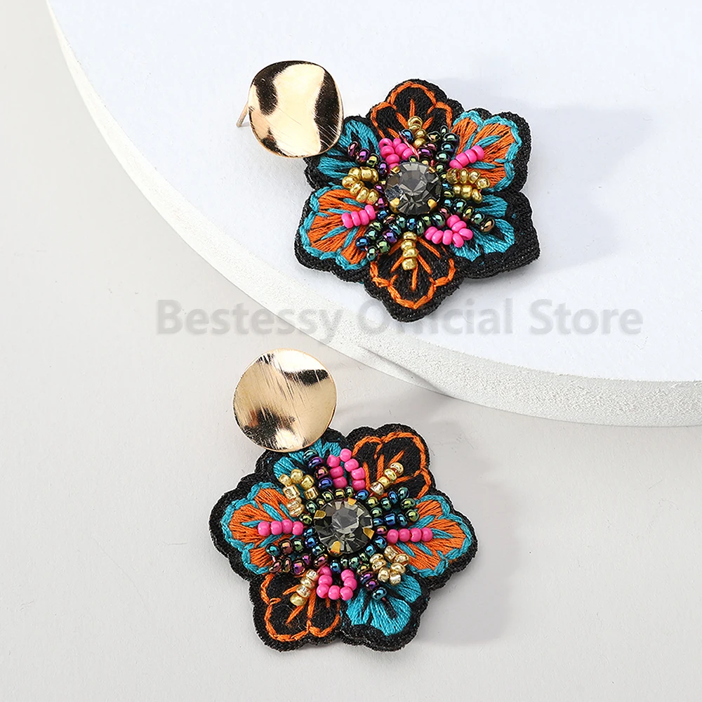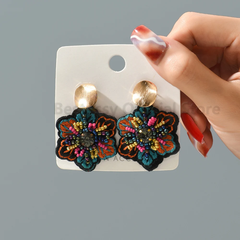 Victoria’s Vouge Handmade Embroidered Flower Dangle Earrings For Women Boho Luxury Elegant Colorful Rice Beads Decor Pendant Fashion Jewelry Gift