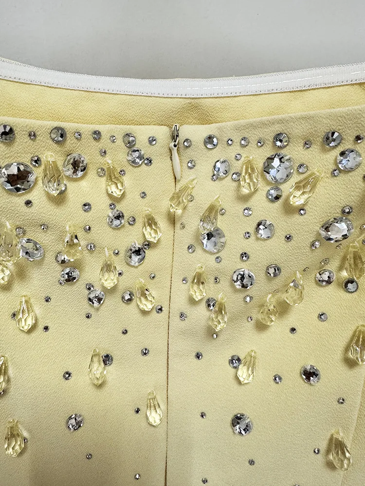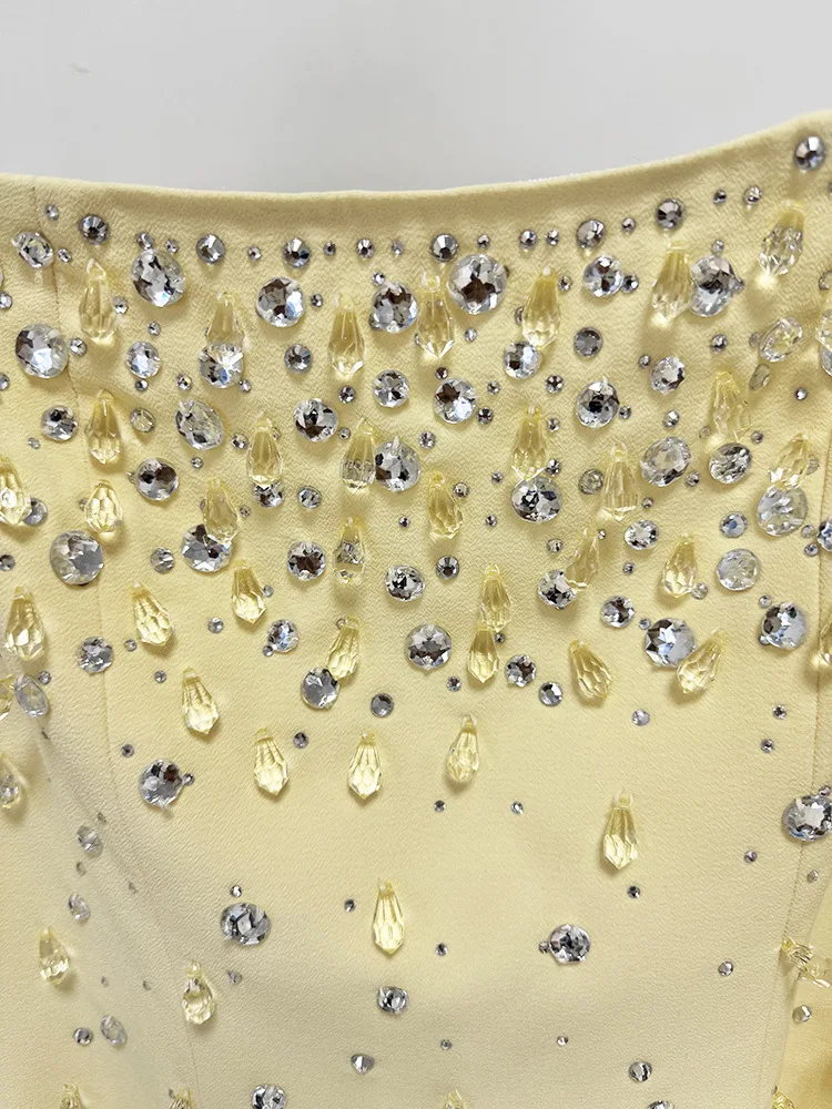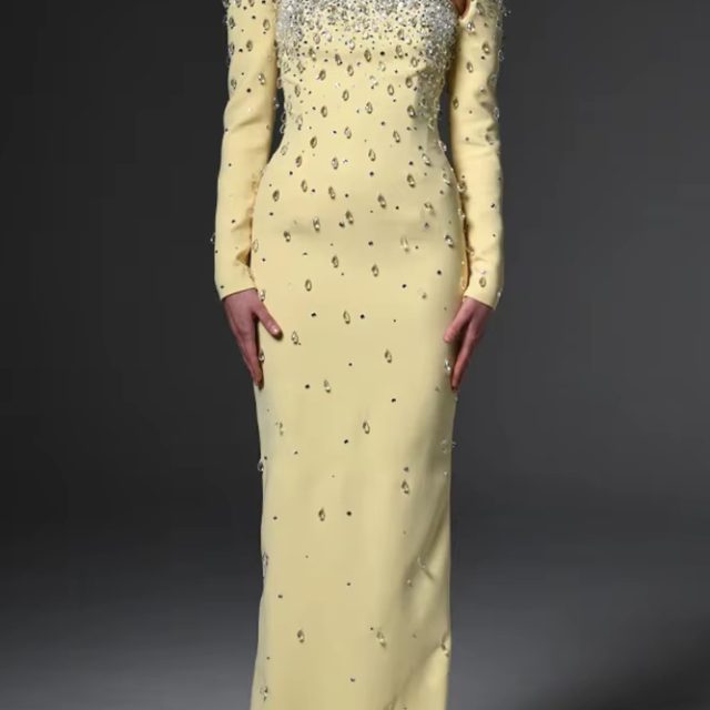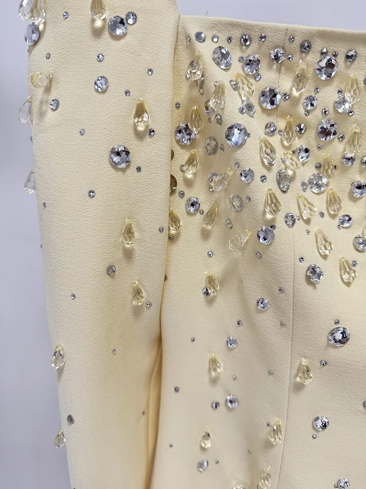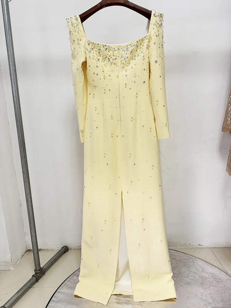 Victoria’s Vogue Newest Fashion 2025 Designer Vestido Women’s Square Collar Beading Diamonds Long Sleeve Maxi Dress