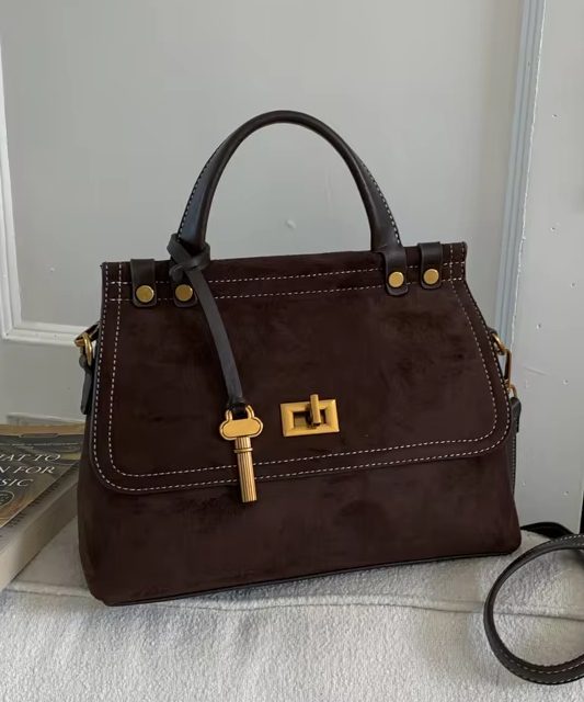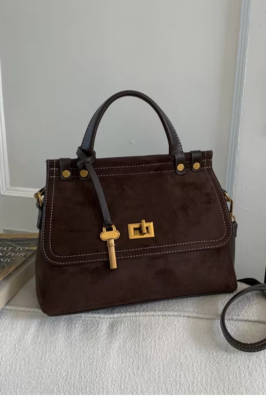 Victoria’s Vogue Retro Top-handle Bags For Women 2025 Winter New Designer Handbags Luxury Flap Shape PU Suede Shoulder Crossbody Bag