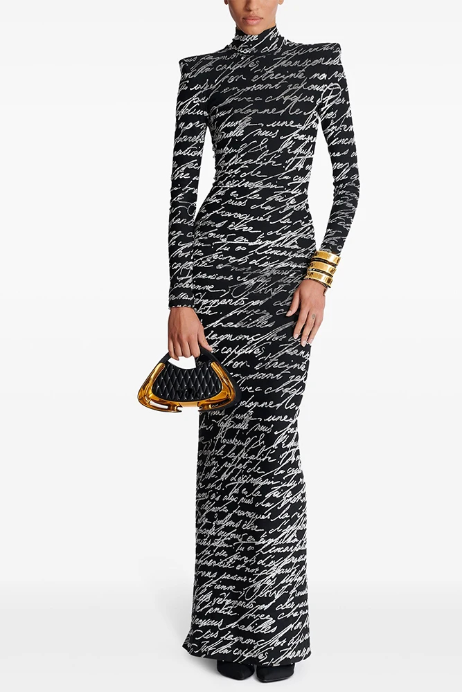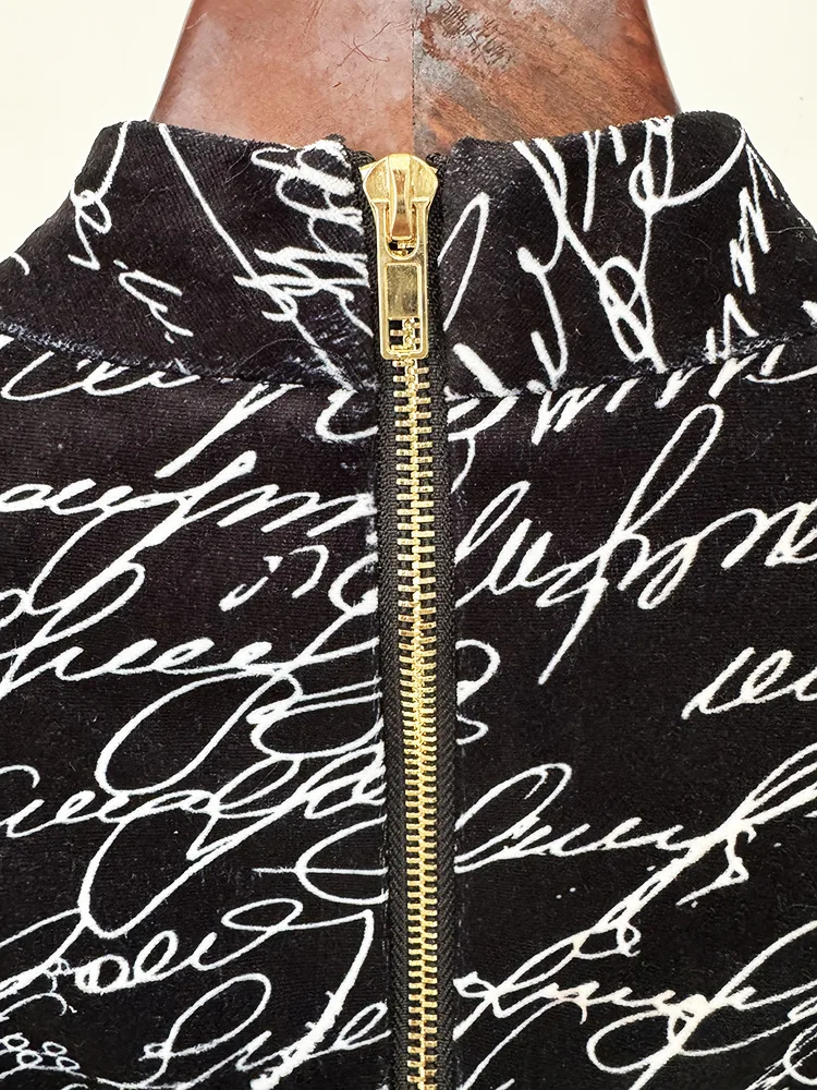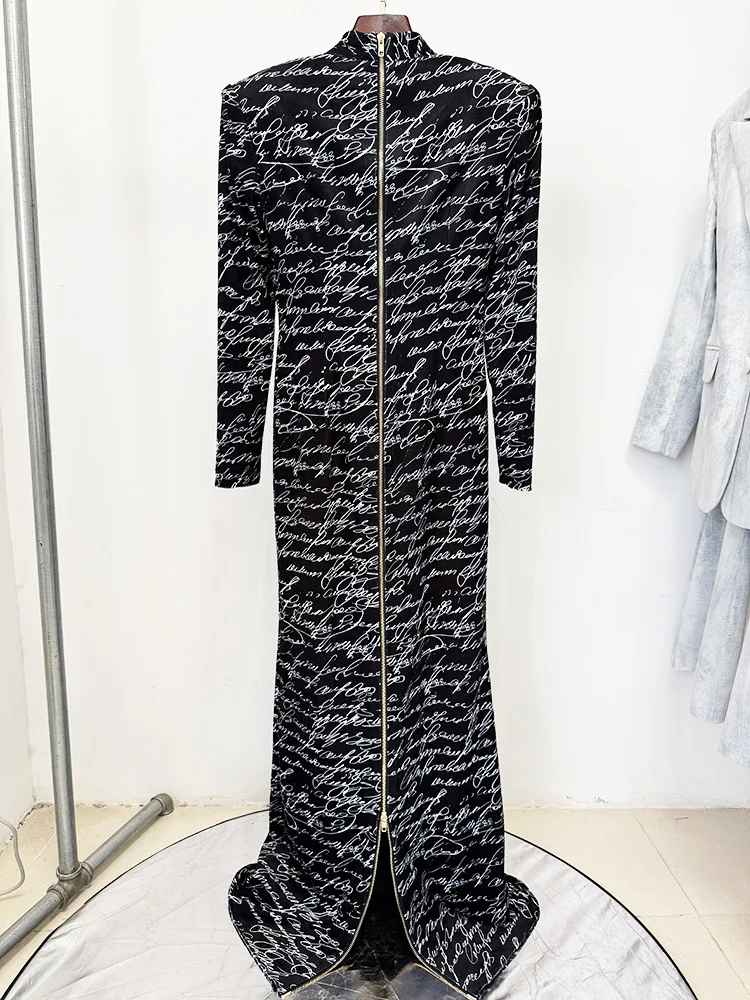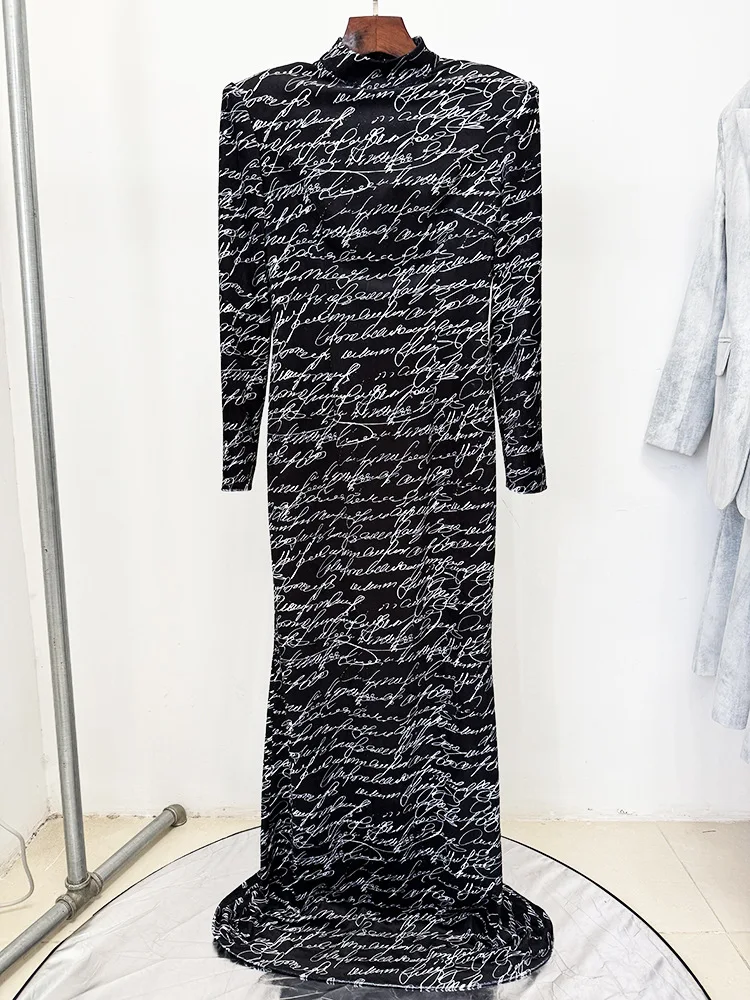 Victoria’s Vogue 2025 Newest Fashion Designer Dresses Women’s Letter Printed Velvet Long Maxi Dress
