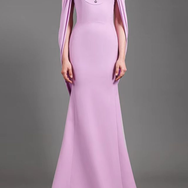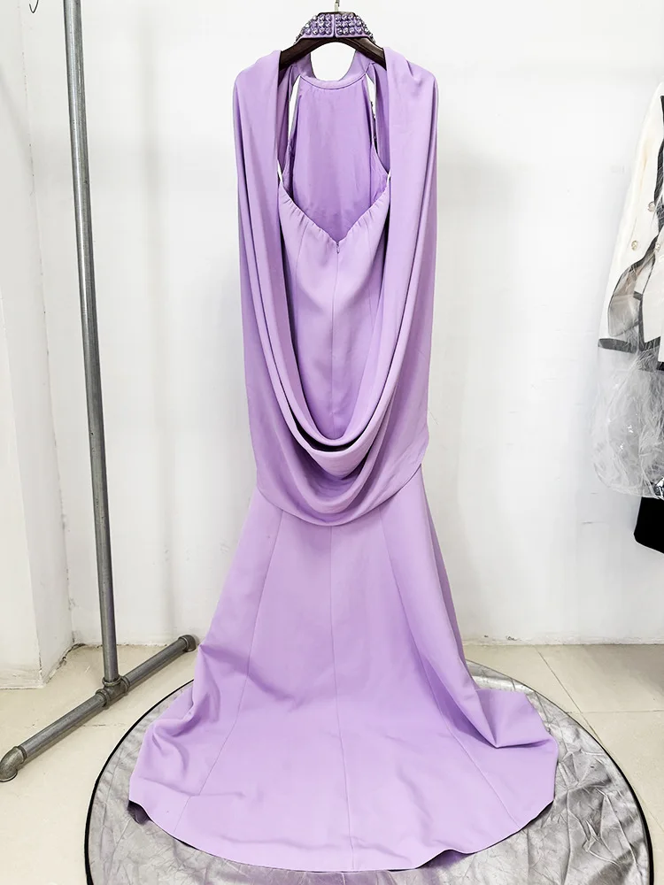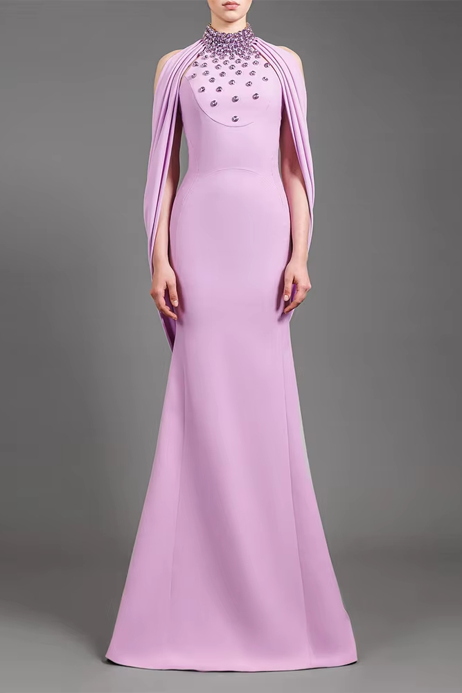 Victoria’s Vogue Newest 2025 Designer Vestido Women’s Diamonds Beaded Backless Cape Sleeve Floor Length Maxi Long Dress