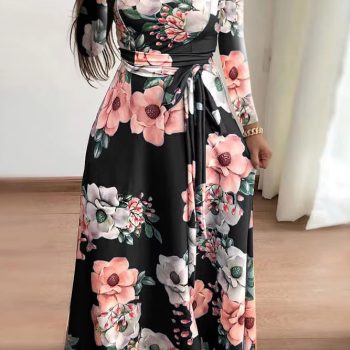 Victoria’s Vogue Women’s Floral Print Summer Dress – 2025 New Boho A-Line Swing Dress with Short Sleeves, High Waist Flowy Maxi Dress for Beach &