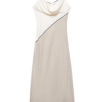 Victoria’s Vogue Elegant Women Patchwork Slim Strap Dress 2025 Summer Pile Collar Sleeveless Beach Party Dress Sexy Asymmetrical Midi Dress