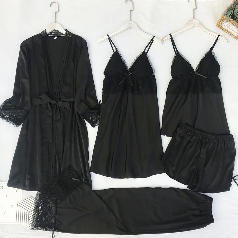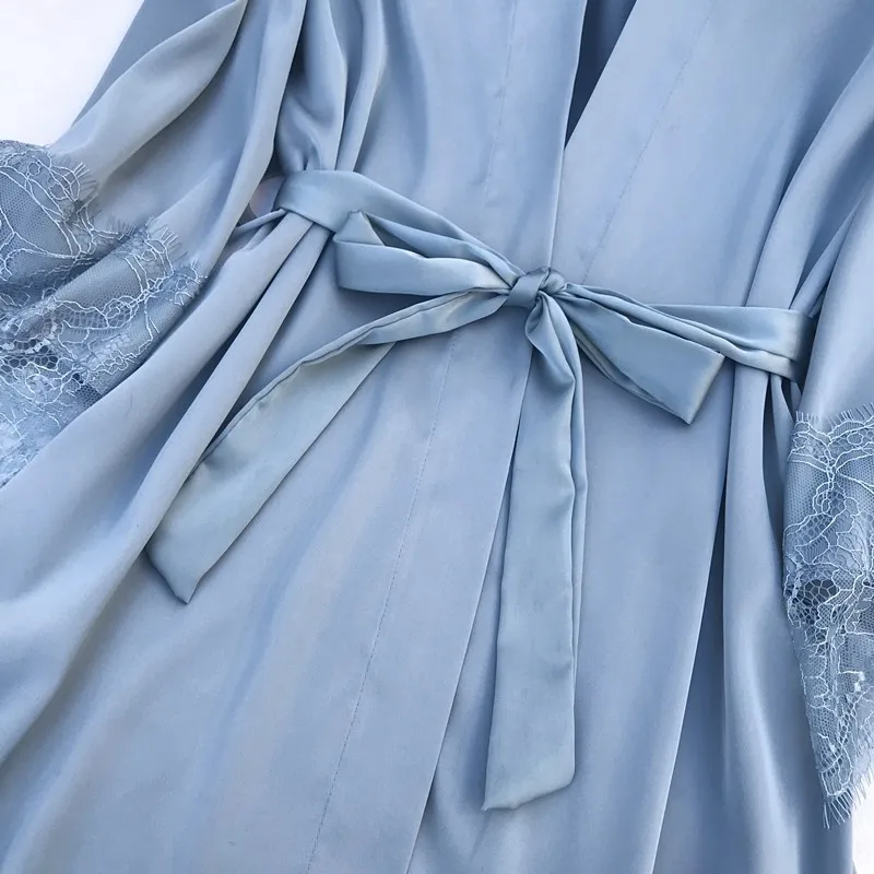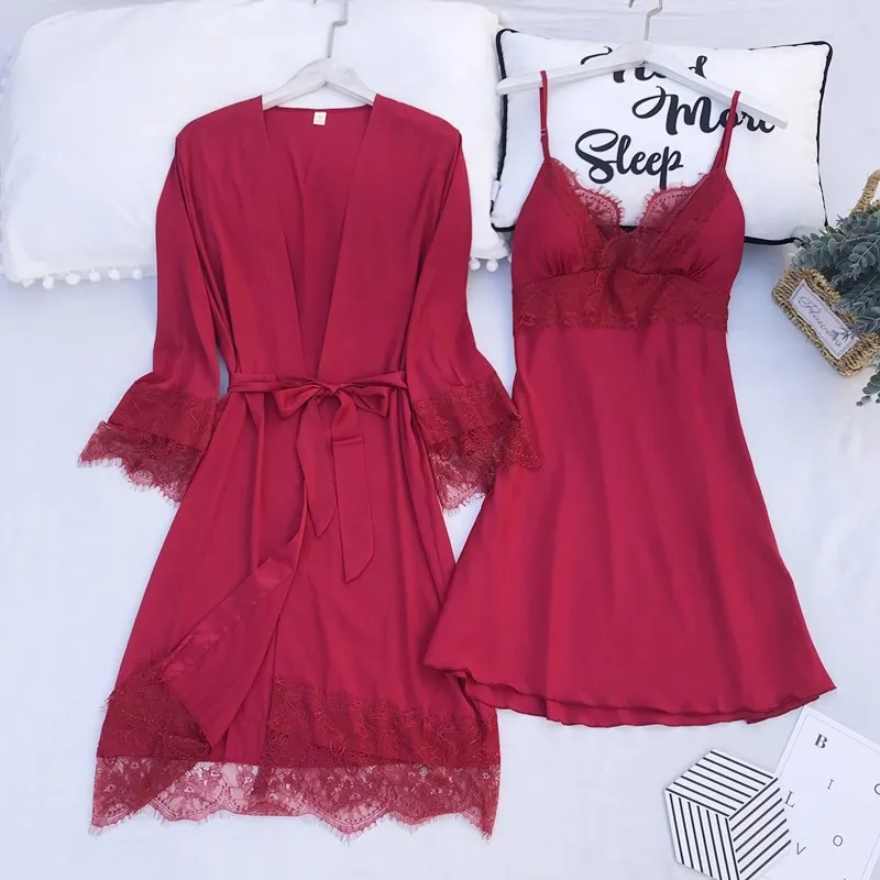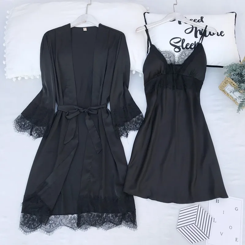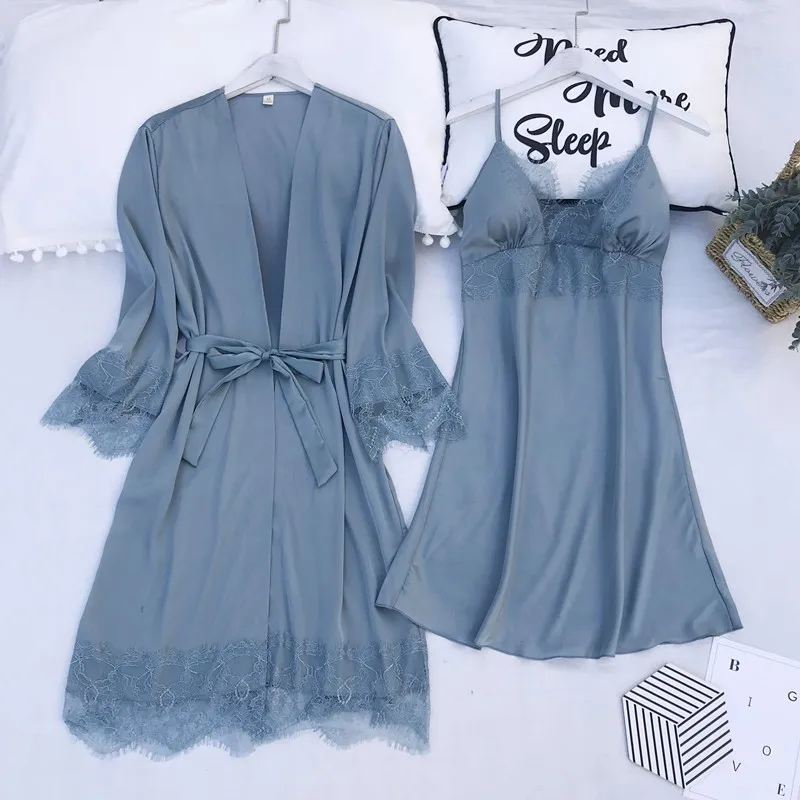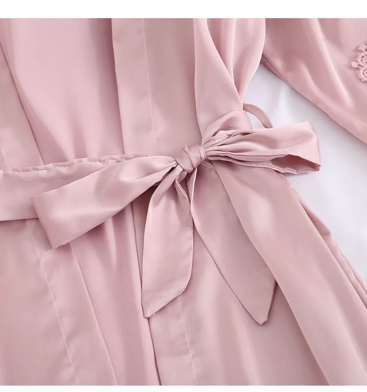Victoria’s Vogue Sexy Female Robe Set Kimono Bath Gown Casual Soft Sleepwear Nightgown Rayon Silk Rayon Nightwear Nightdress Home Clothes Suit