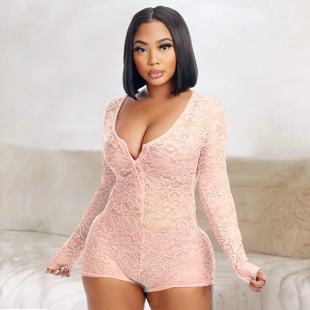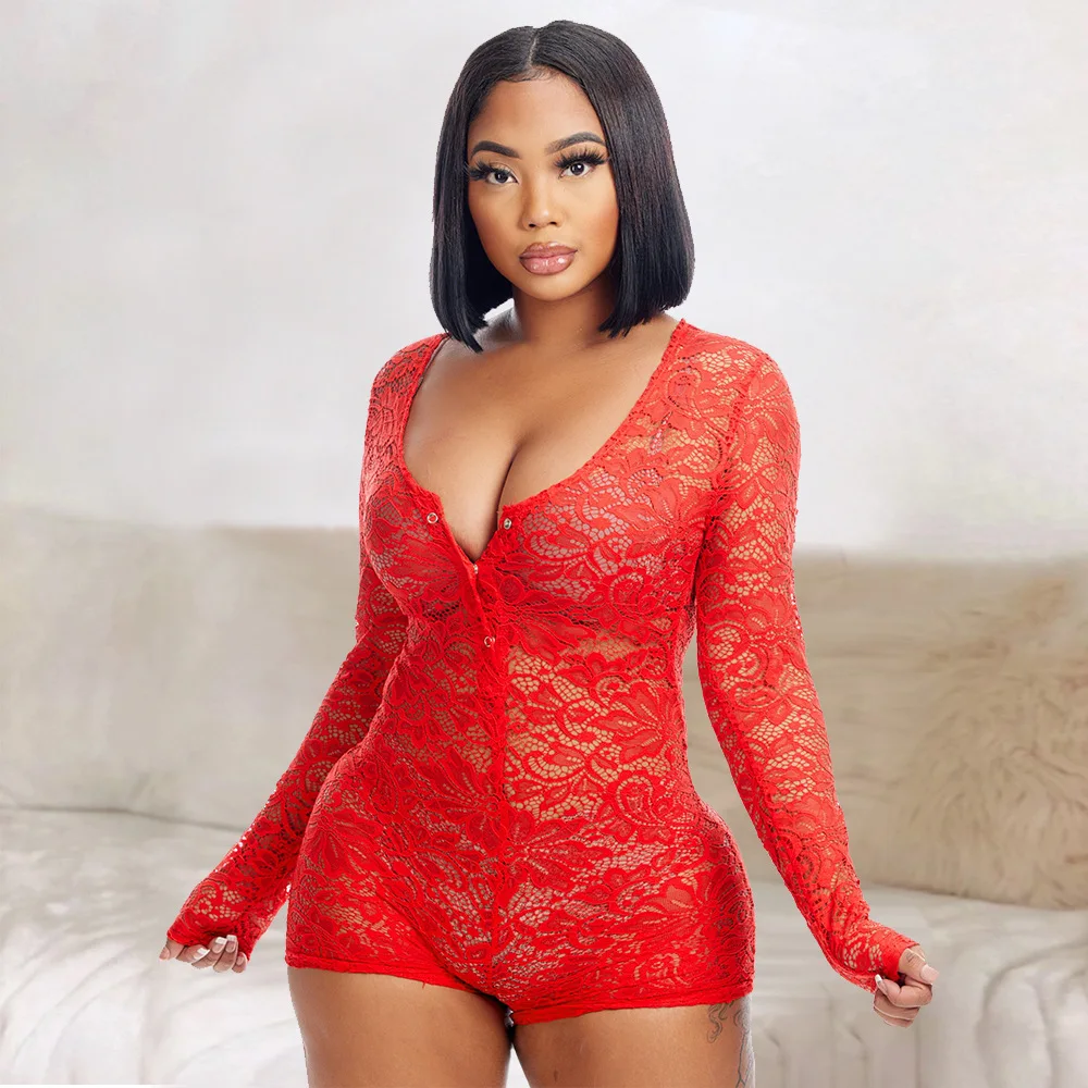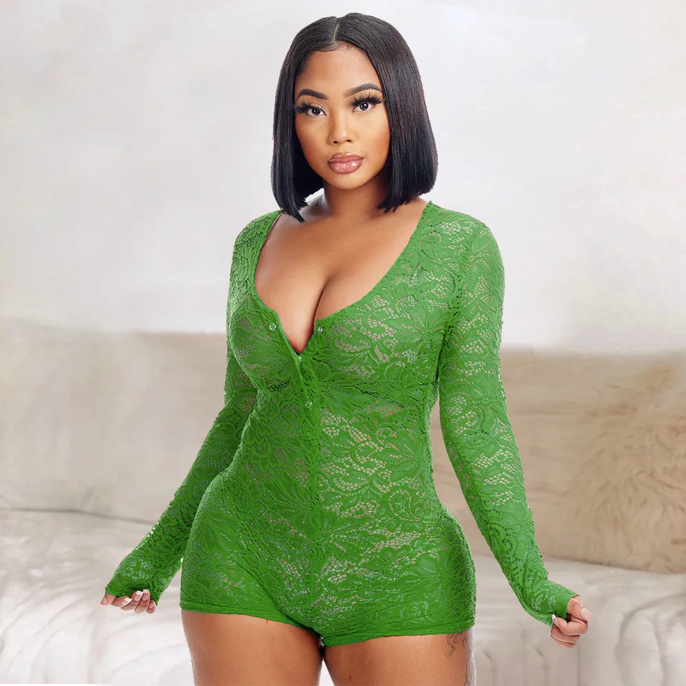 Victoria’s Vogue Women Sexy Mesh Sheer Lace Playsuit Deep V Bodycon Shorts Rompers Summer Clothes Club bodysuit lingerie S-3XL