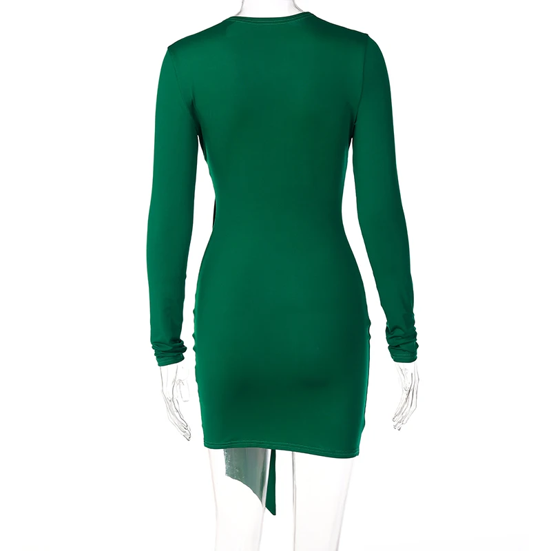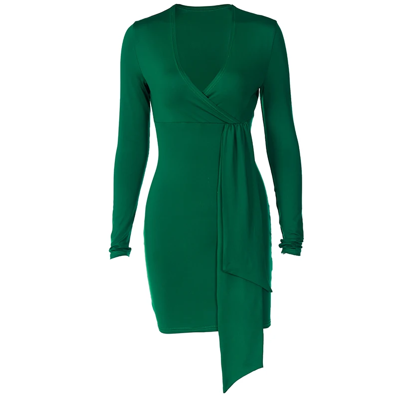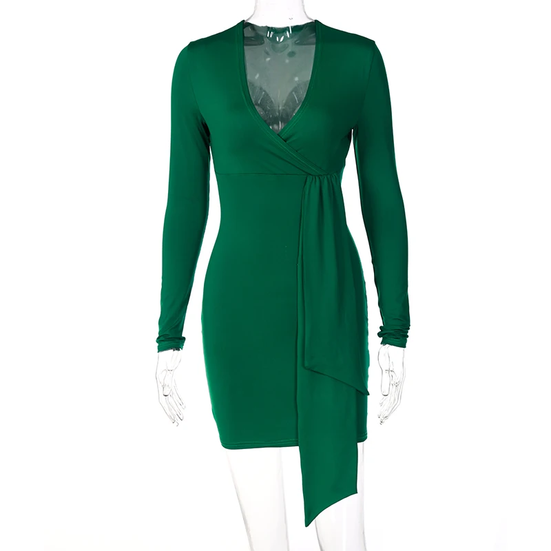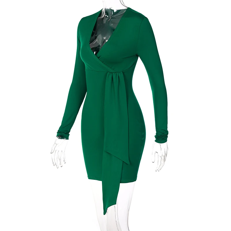 victoria’s vogue Satin Long Sleeves V Neck Drawstring Party Club Evening Festival Mini Dress 2022 Women Fall Winter Bodycon