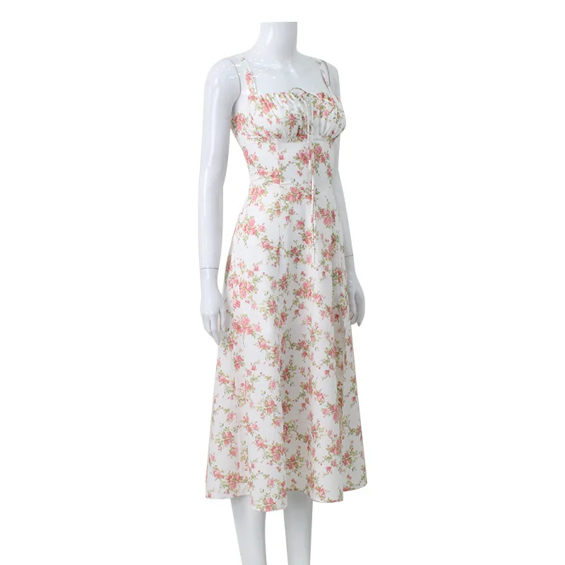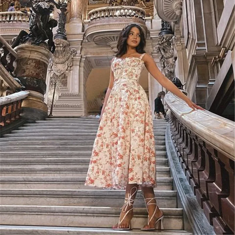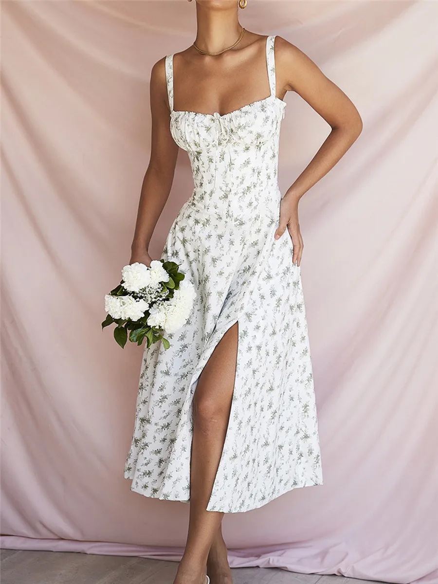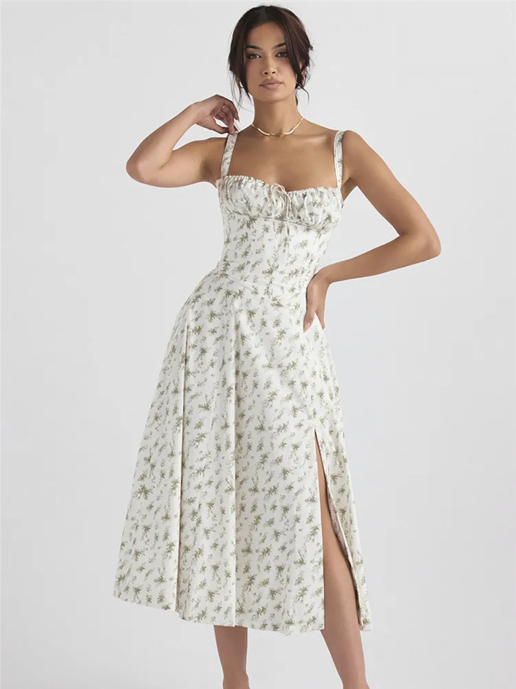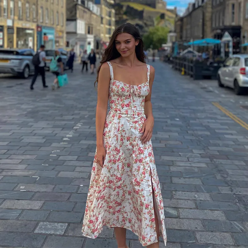 Victoria’s Vogue Floral Printed Dresses For Women Fashion Sexy Elegant Strap Sleeveless High Side Split Long Vestidos Robes Female Slim