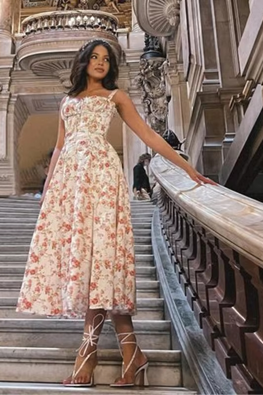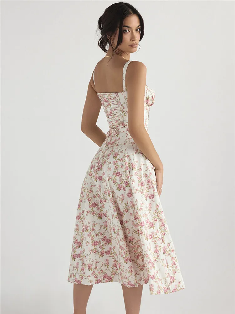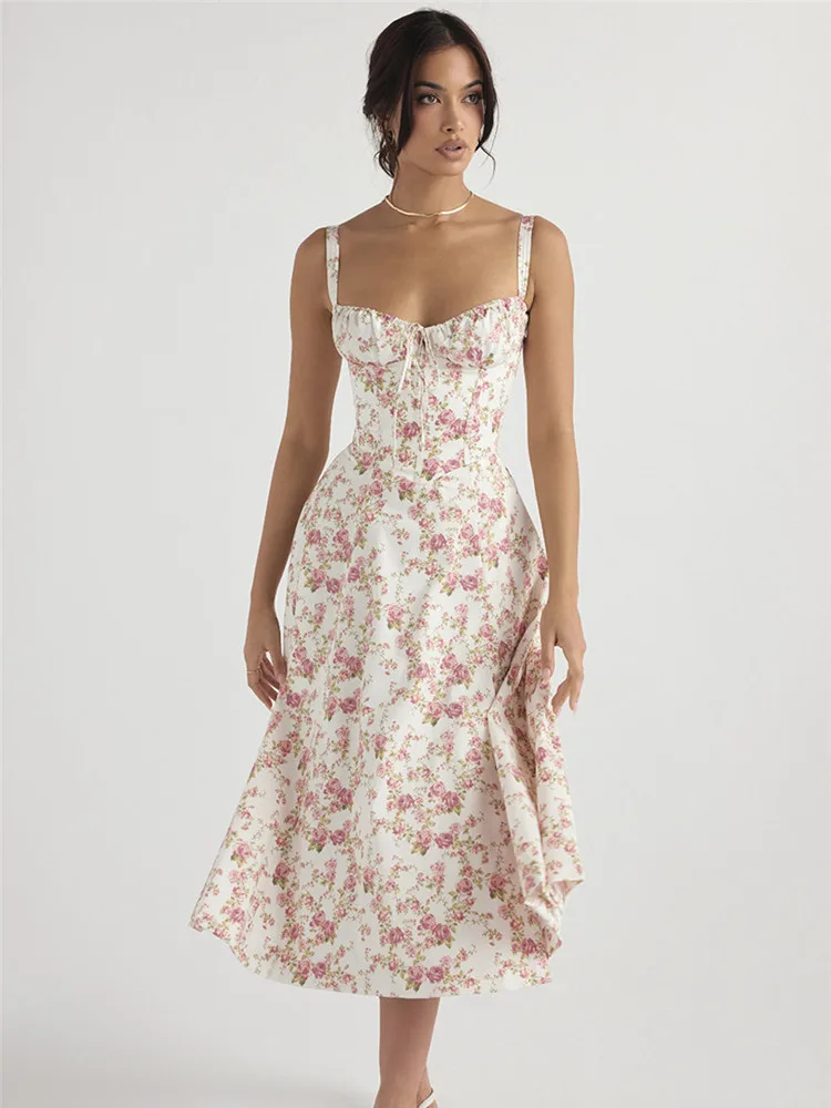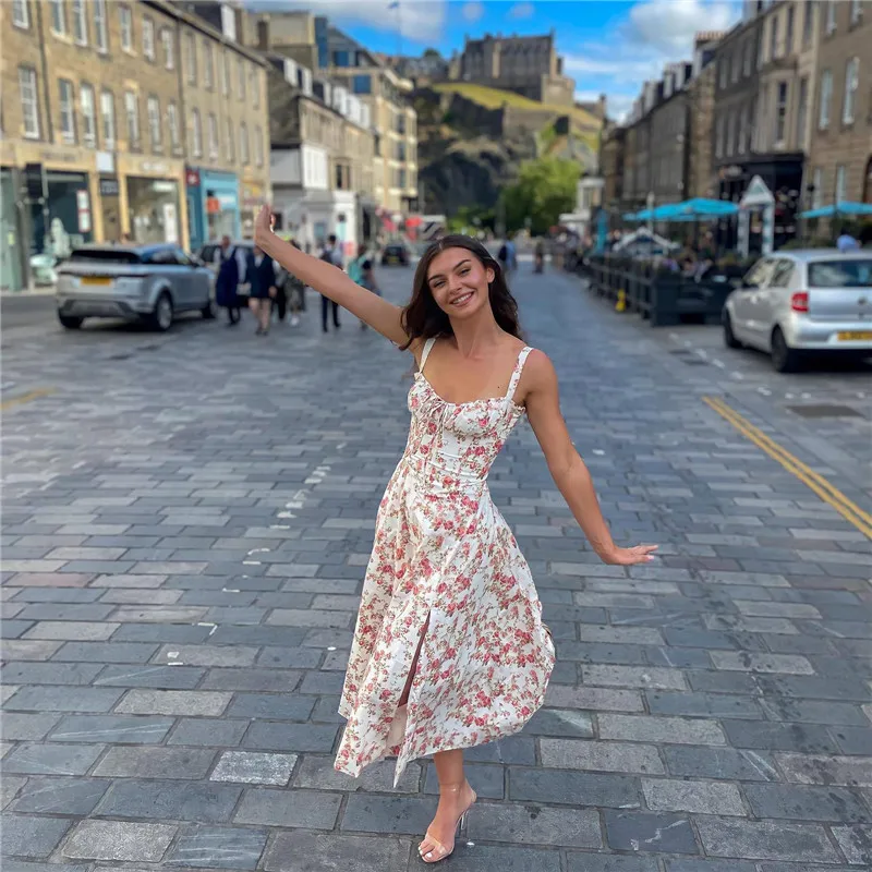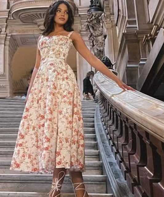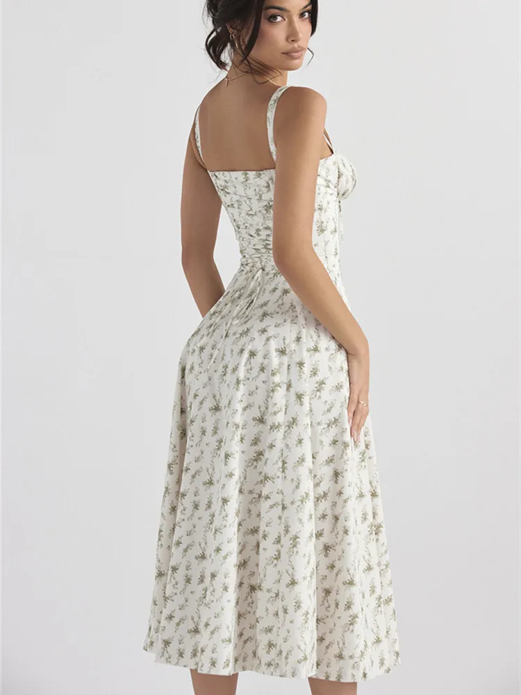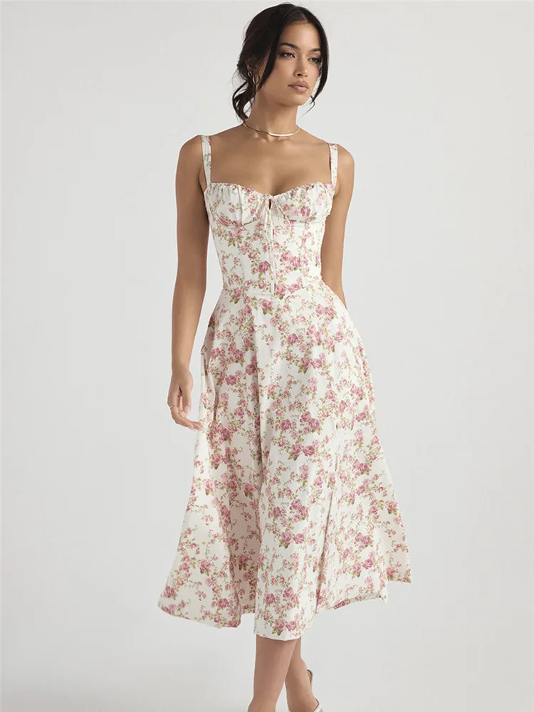 Victoria’s Vogue Floral Printed Dresses For Women Fashion Sexy Elegant Strap Sleeveless High Side Split Long Vestidos Robes Female Slim