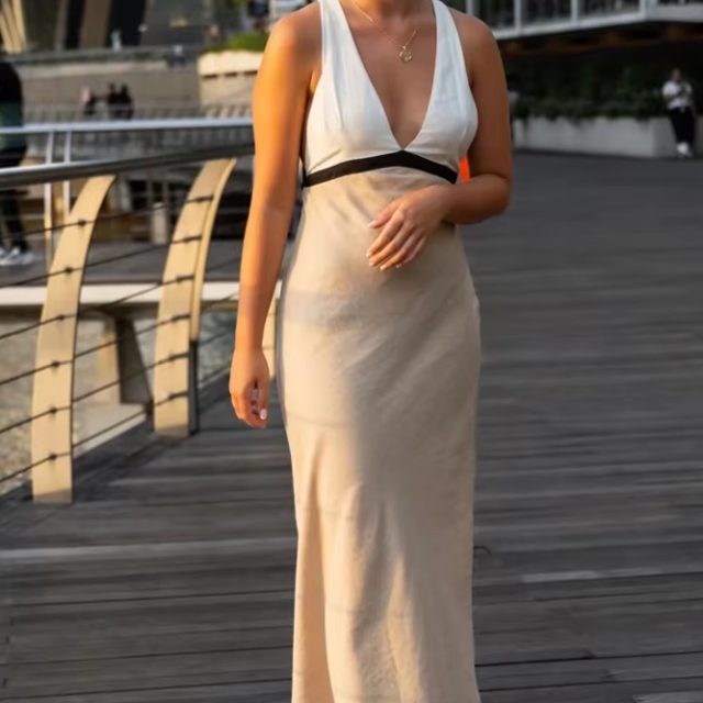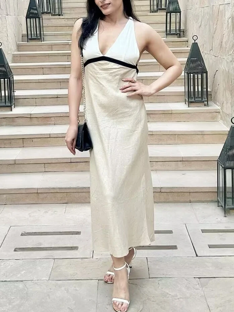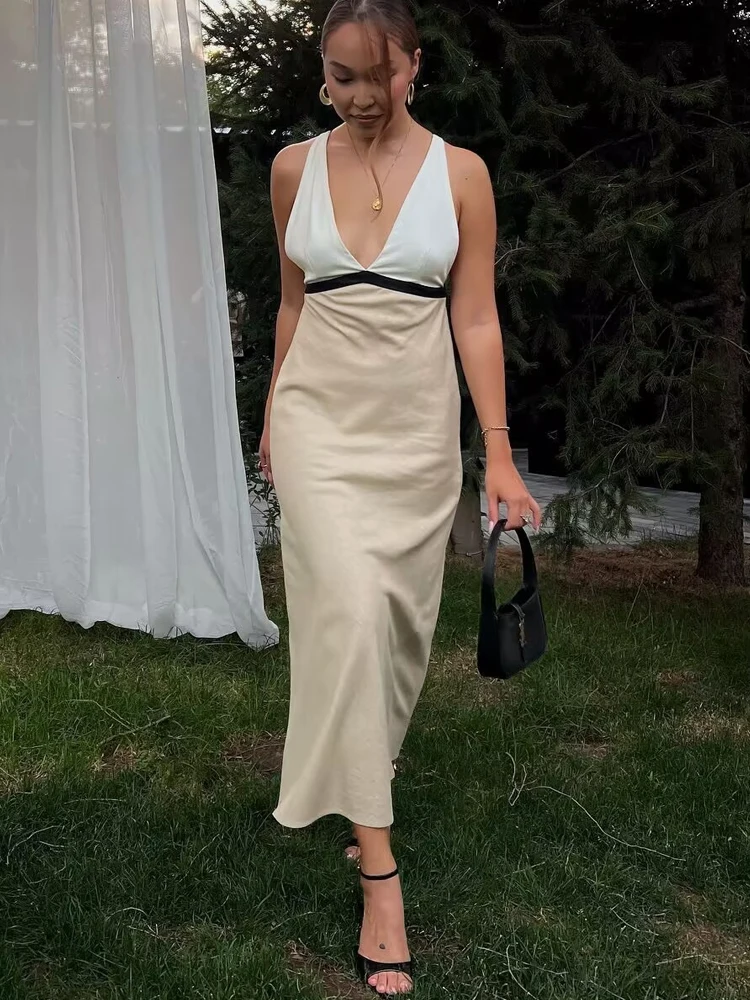 Victoria’s Vogue Women Dresses Patchwork Backless V-neck Sleeveless Halter Dress Sexy Elegant Party Long Dress