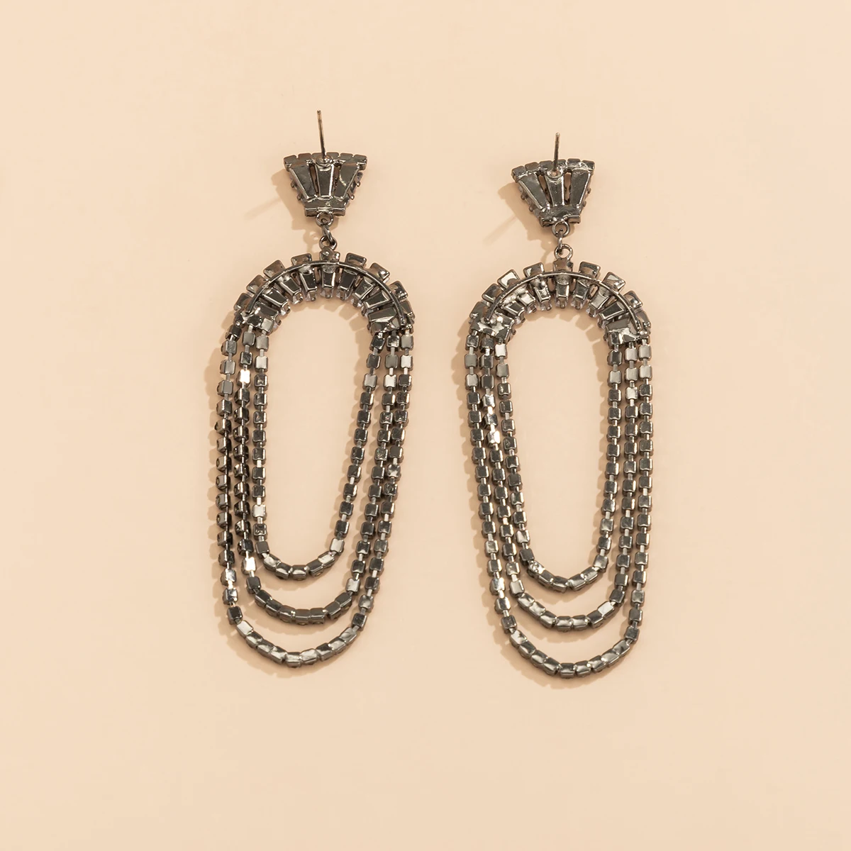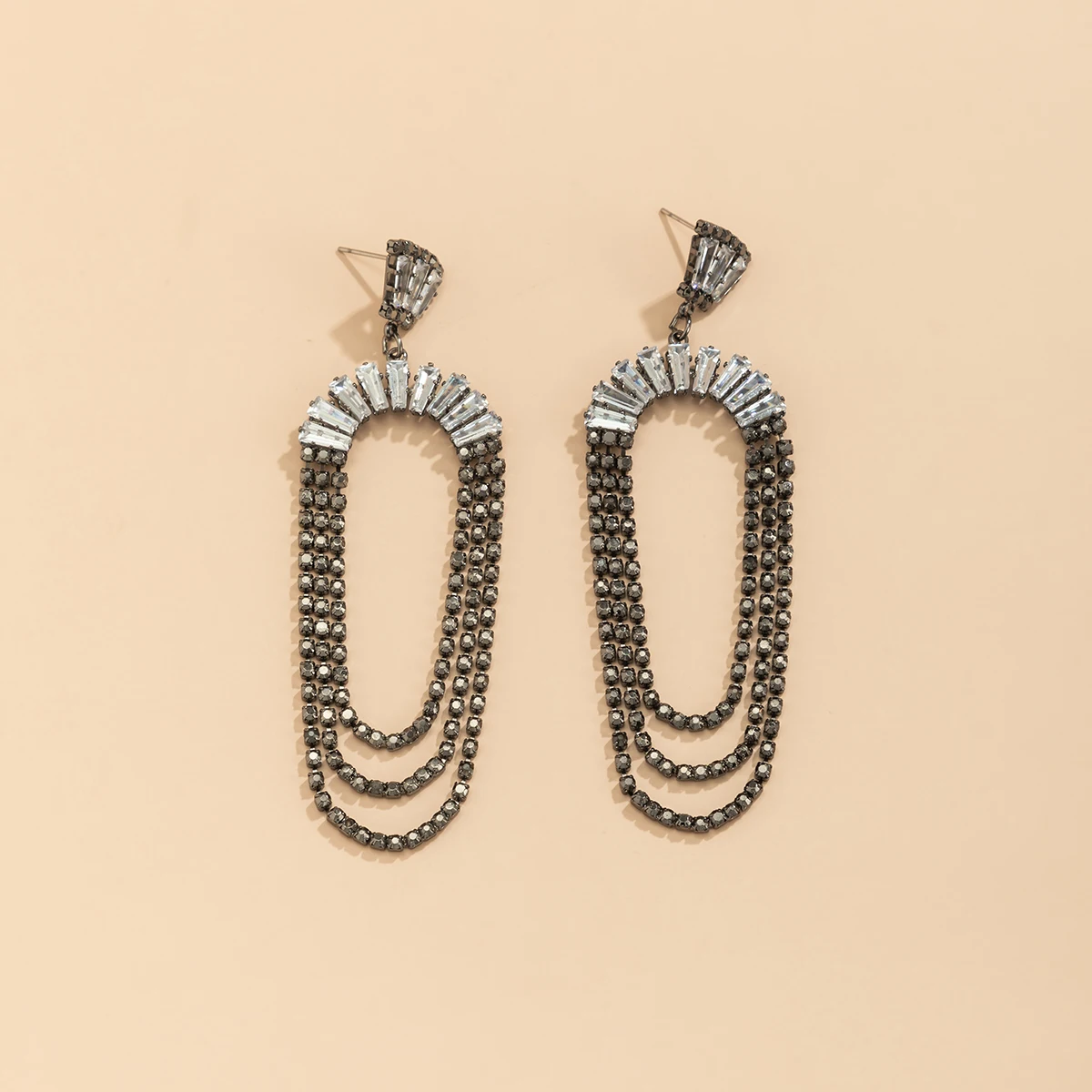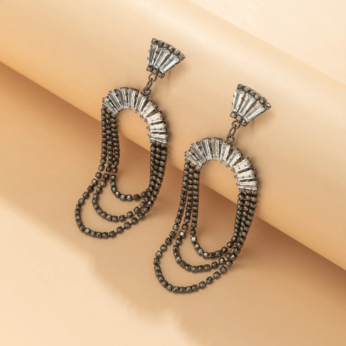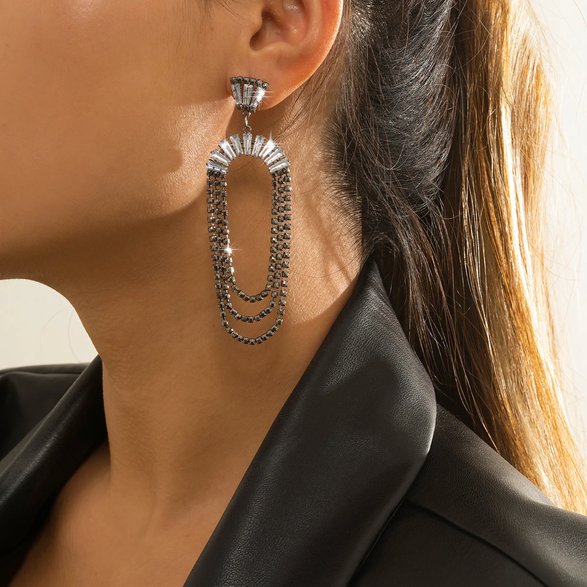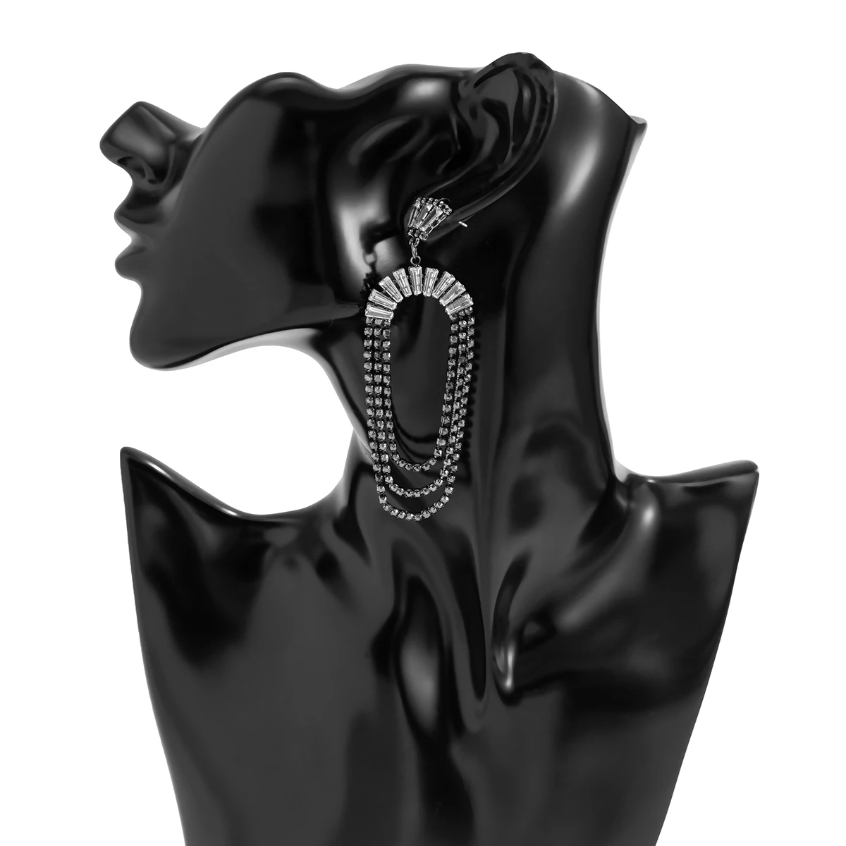 victoria’s vogue Luxury Shiny Rhinestones Long Earrings Stylish Black Color Crystal Dangle Drop Earrings Female Ear Piercing Jewelry