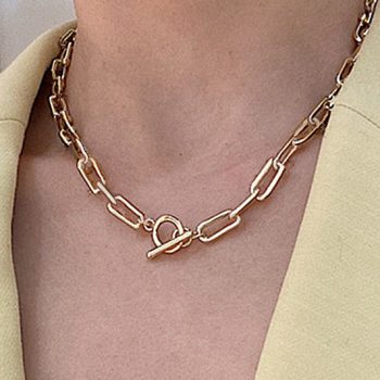 Victoria’s Vogue Thick Chain Toggle Clasp Gold Necklaces Mixed Linked Circle Necklaces for Women Minimalist Choker Necklace Hot Jewelry