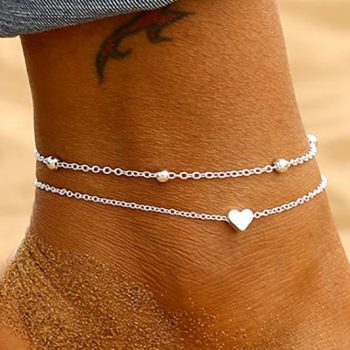 Victoria’s Vogue Women’s Anklet Bohemian Layered Heart Anklet 2021 Summer Beach Anklets On Foot Ankle Bracelets For Women Leg Chain