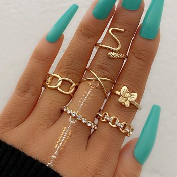 victoria’s vogue Bohemian Gold Chain Rings Set For Women Fashion Boho Coin Snake Moon Rings Party 2022 Trend Jewelry Gift