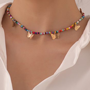 Victoria’s Vogue Bohemia Handmade Bead Candy Shell Butterfly Personality Multi-Layer Satellite Gothic Necklace Women’s Fashion Heart Jewelry Gift