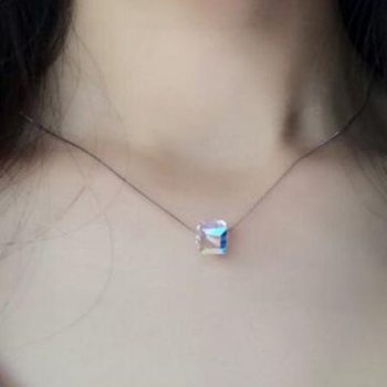 victoria’s vogue New 925 Sterling Silver Jewelry Fashion Genuine Light Candy Square Crystal Clavicle Chain Female Pendant Neckla